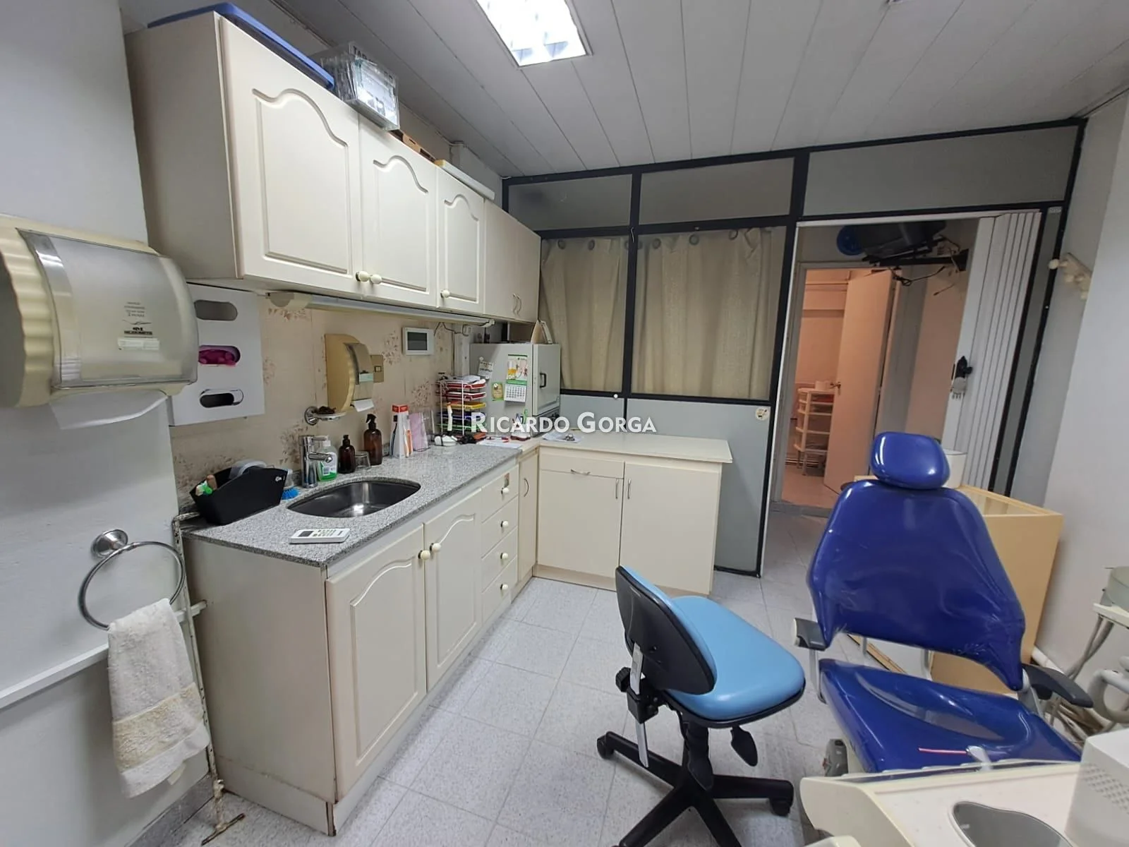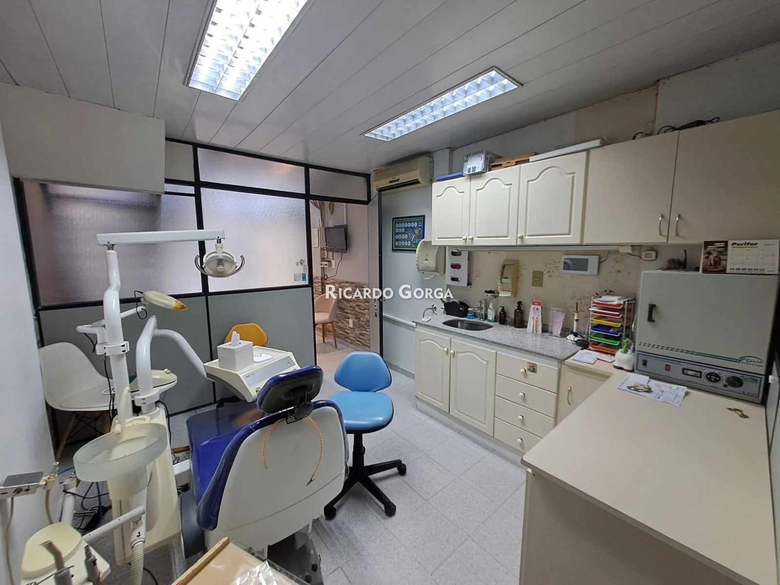 Una oficina o escritorio, ideal para laboratorista dental, con escritorio, cajoneras, mueble con espacio de guardado, además espacio para el segundo consultorio, el cual posee sillón adecuado, iluminación y otros implementos en buen estado para desarrollar la profesión.