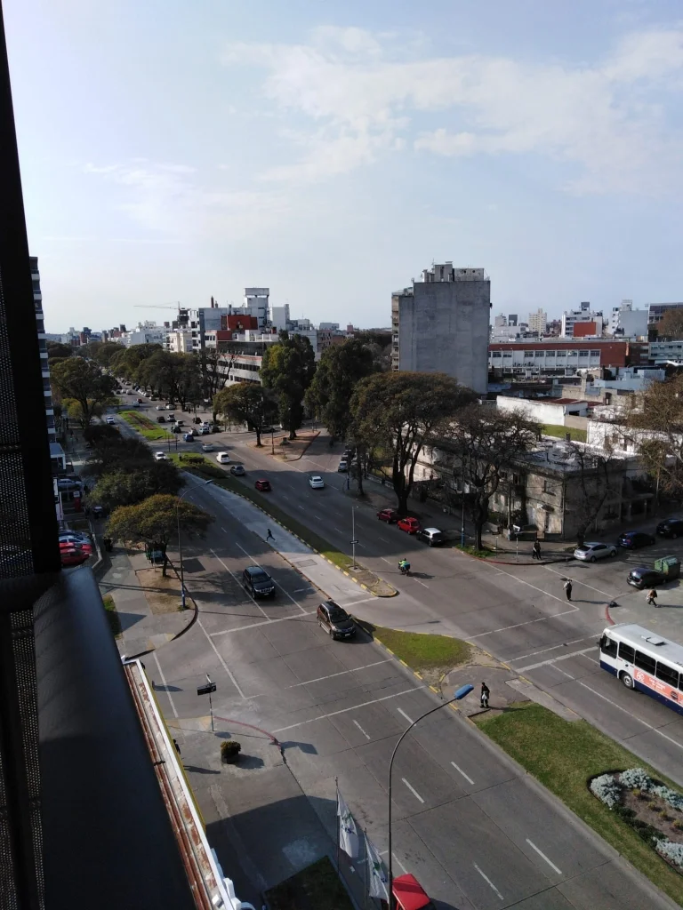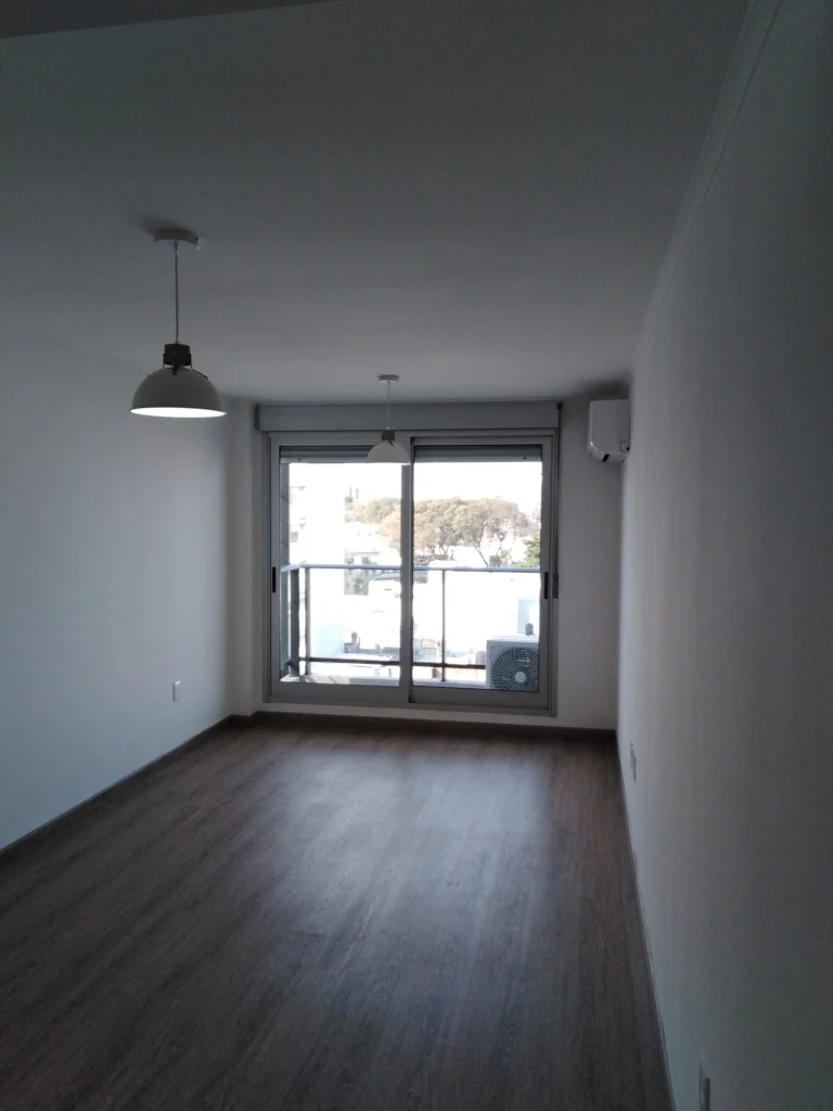 Living al frente con terraza sobre Bulevar, abertura doble vidrio, Aire Acondicionado 18.000 BTU, luminaria instalada. Barra hacia la cocina.