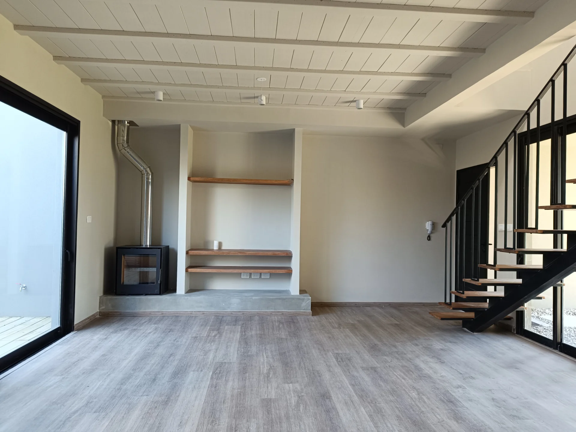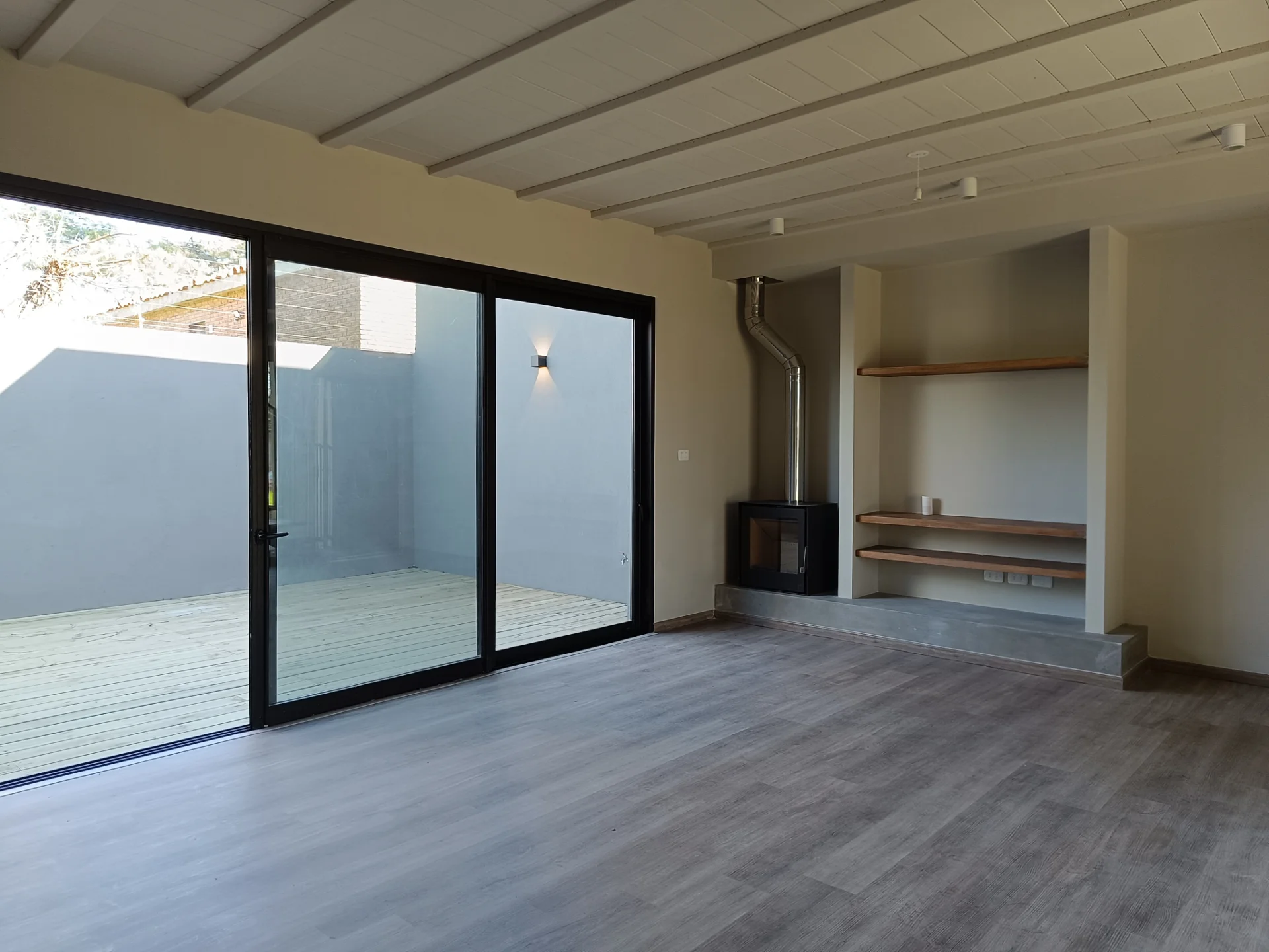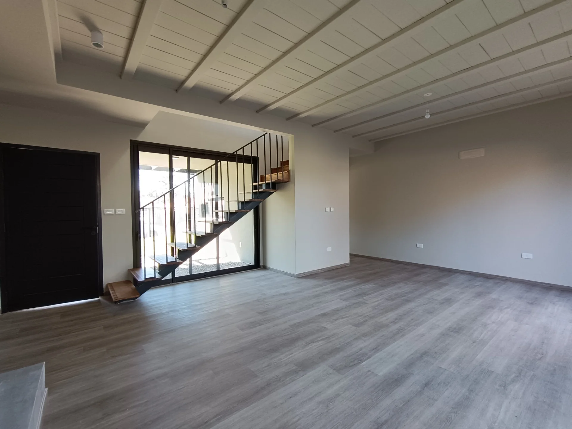 Planta baja: amplio living comedor con estufa a leña, toilette y cocina definida, completa con anafe, horno y campana.