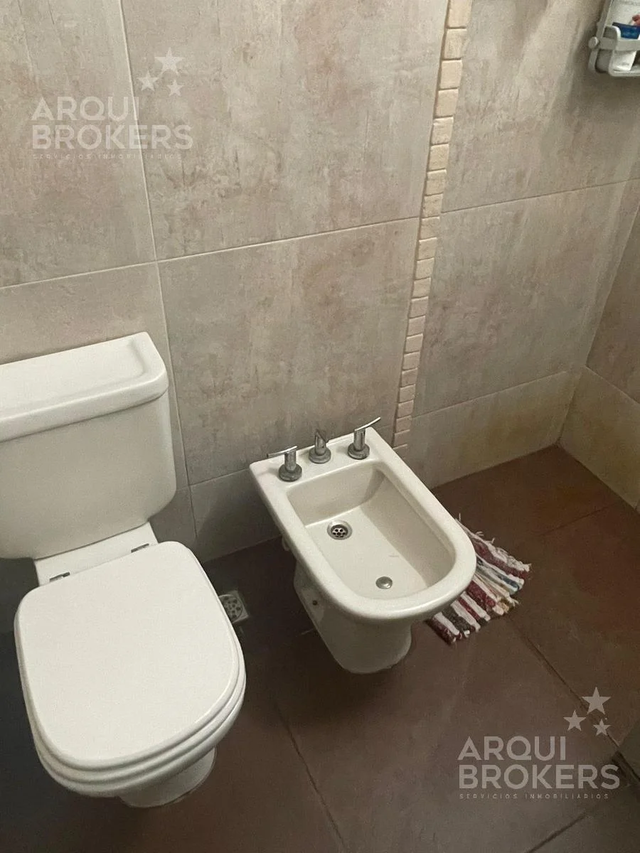 Baño completo en planta baja y cocina definida con placares bajo y sobre mesada.