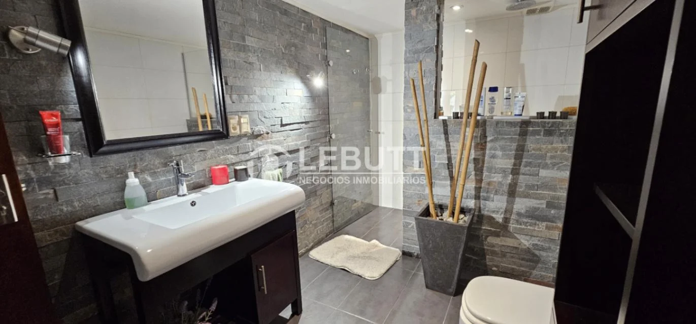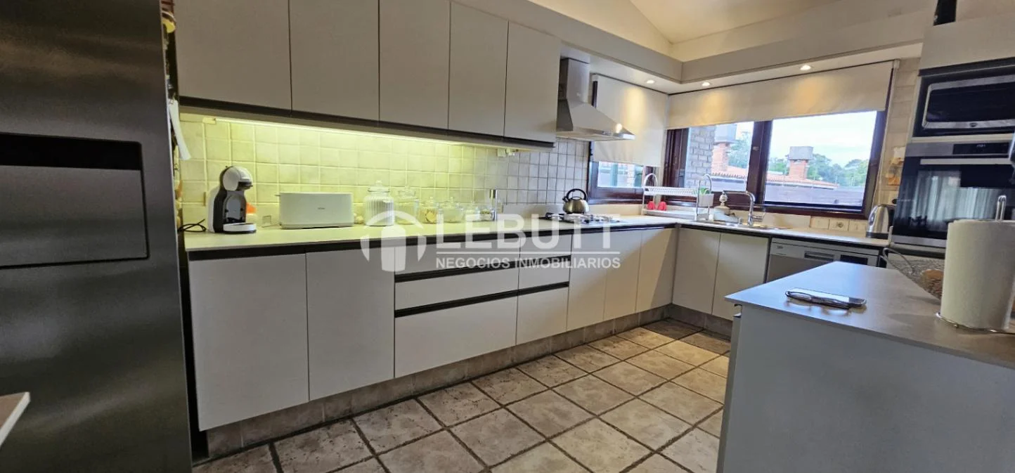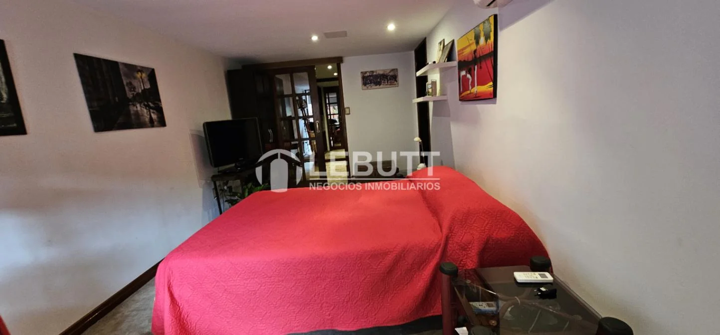 Apartamento independiente al fondo que puede funcionar como Barbacoa ya que dispone de Parrillero y área de cocina. Dispone de un amplio Dormitorio en la planta alta, con Aire Acondicionado, Vestidor y además Baño completo. Fondo verde con riego automático. Capacidad para 3 vehículos bajo techo y varios más dentro del predio.