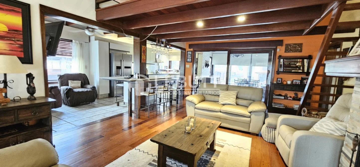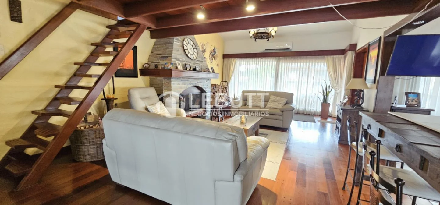 Planta principal - cuenta con un gran recibidor, equipado con Aire Acondicionado y Estufa a leña, que da la bienvenida a un ambiente cálido y acogedor con vista al frente y al fondo. Amplia Cocina semi integrada muy cómoda, con variedad de placares sobre y bajo mesada e Isla central. Acceso directo a Terraza cerrada que alberga un encantador comedor diario con hermosa vista al fondo. Área íntima, dispone de 2 amplios Dormitorios con buenos placares y 2 Baños completos, uno de ellos con jacuzzi. Por escalera acceso a Buhardilla con espacio versátil, ideal como Escritorio o Dormitorio para adolescentes.