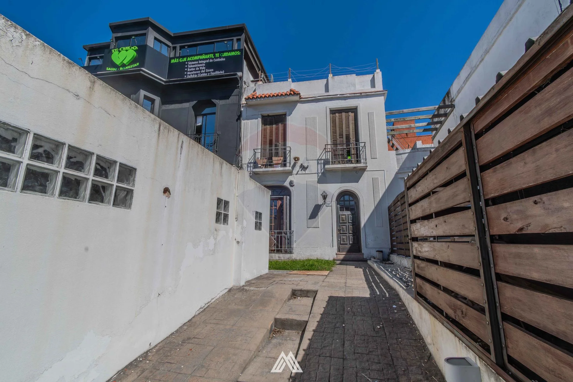 La entrada es amplia, permitiendo el acceso de un auto grande o dos medianos. En la parte frontal, se encuentra una habitación de 20 m² con baño completo, que ofrece la posibilidad de entrada independiente, ideal para un espacio adicional o para rentar.