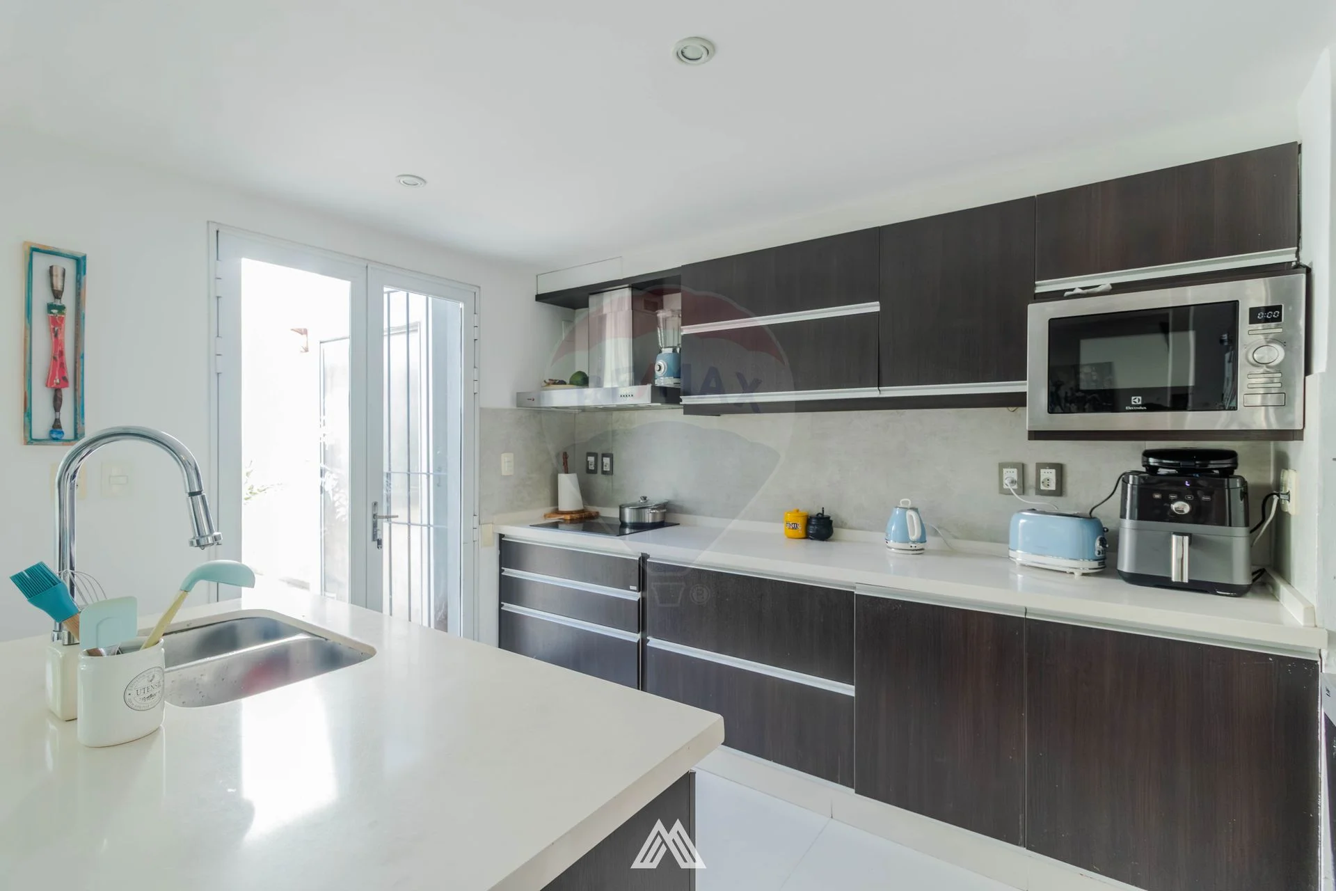 La cocina con buen lugar de almacenamiento es semi integrada a un comedor diario.