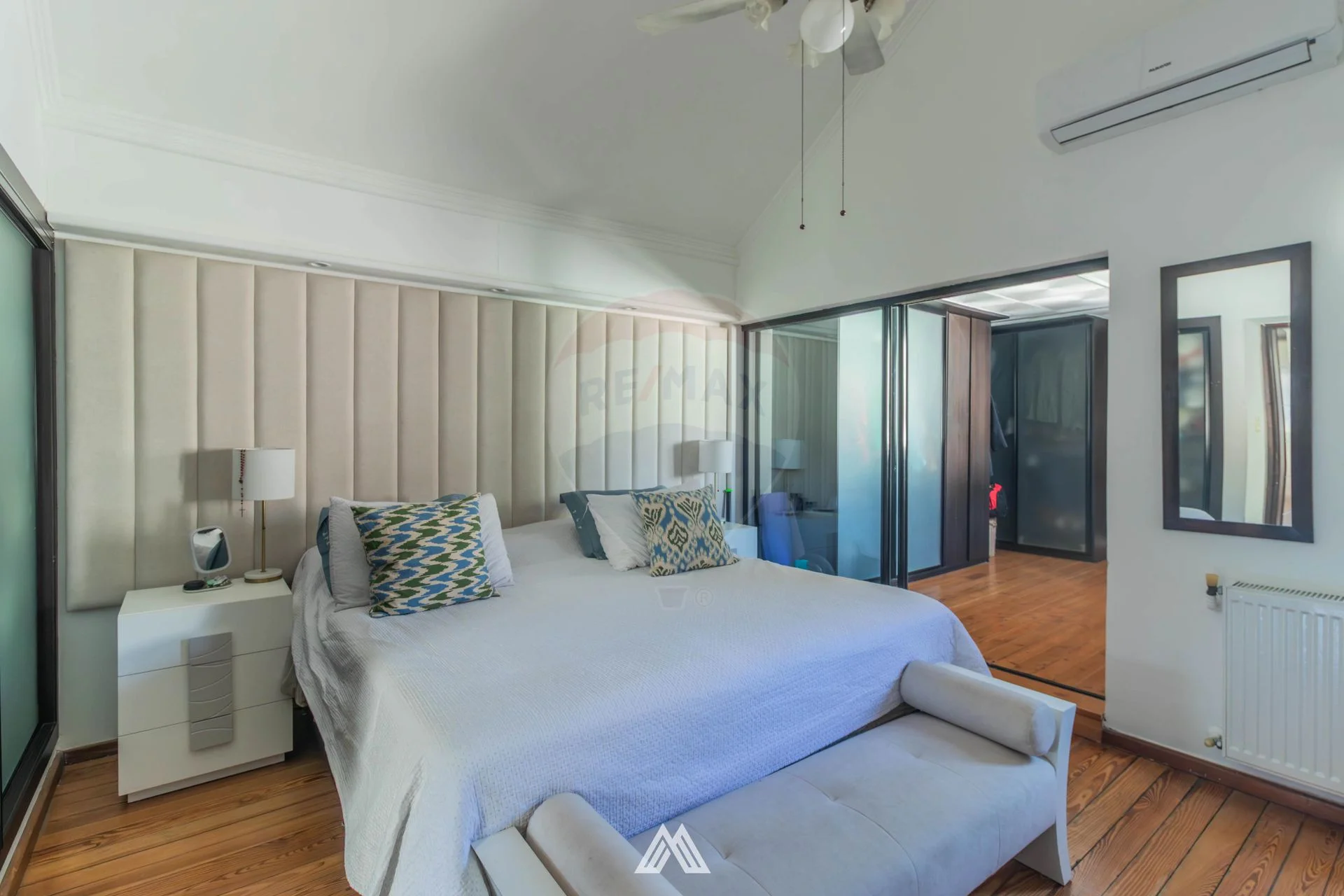 Cuenta con 3 dormitorios, uno de ellos en suite con vestidor y jacuzzi, todos con muy buena iluminación natural. Dispone de 4 baños completos, dos en planta alta incluyendo el de la suite, uno en planta baja, otro en el sector del patio y además un toilette en la barbacoa.