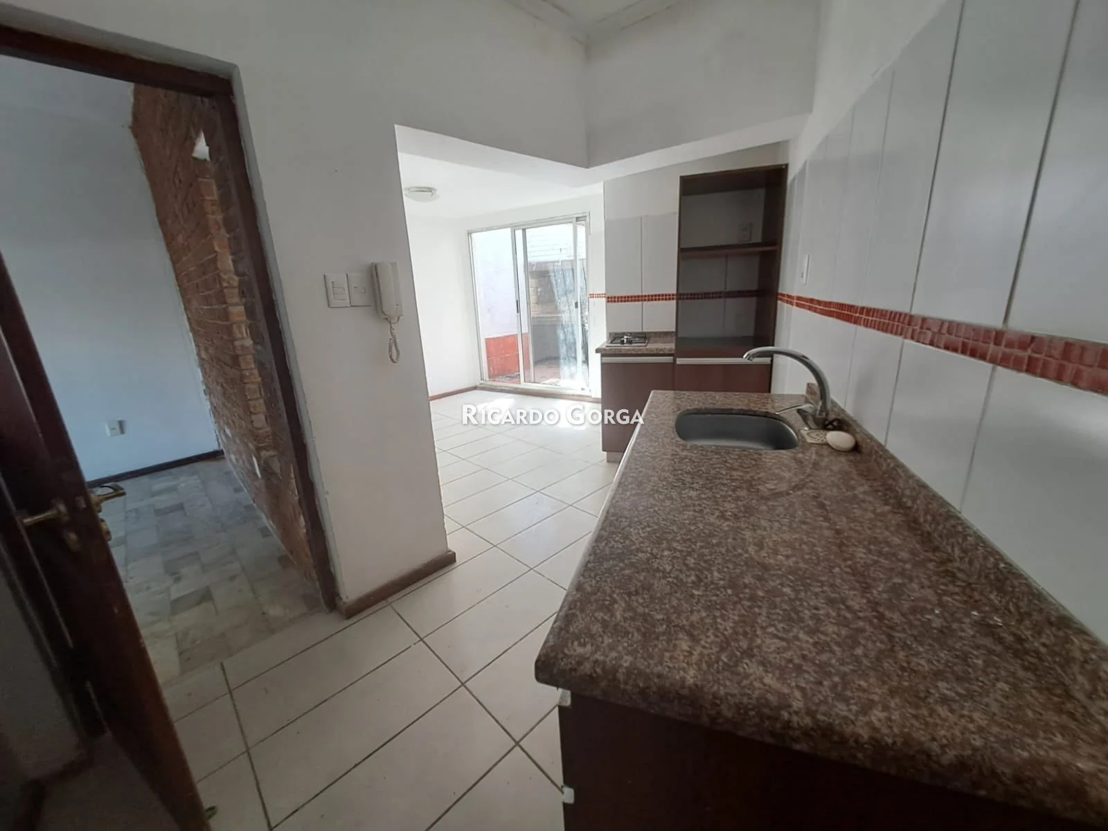 Cocina con piso de cerámica, mesada de granito con bajo mesada y anafe a gas