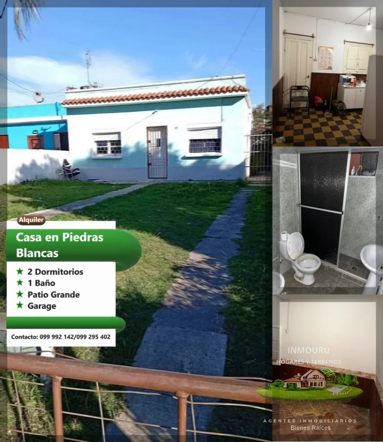 Ubicacion: Capitan tula esquina Sebastián Rodríguez - Piedras Blancas - Montevideo 2 Dormitorios 1 Baño Tiene patio No tiene parrillero No tiene estufa Tiene garage Casa Acepta mascotas Tiene fondo cerrado con rejas Garantia: ANDA Alquiler $20,000 + Luz y agua consumo del inquilino Honorarios Profesionales: 1 Mes de Alquiler + IVA Agente: Valeria. Referencia Interna : Tera-2027