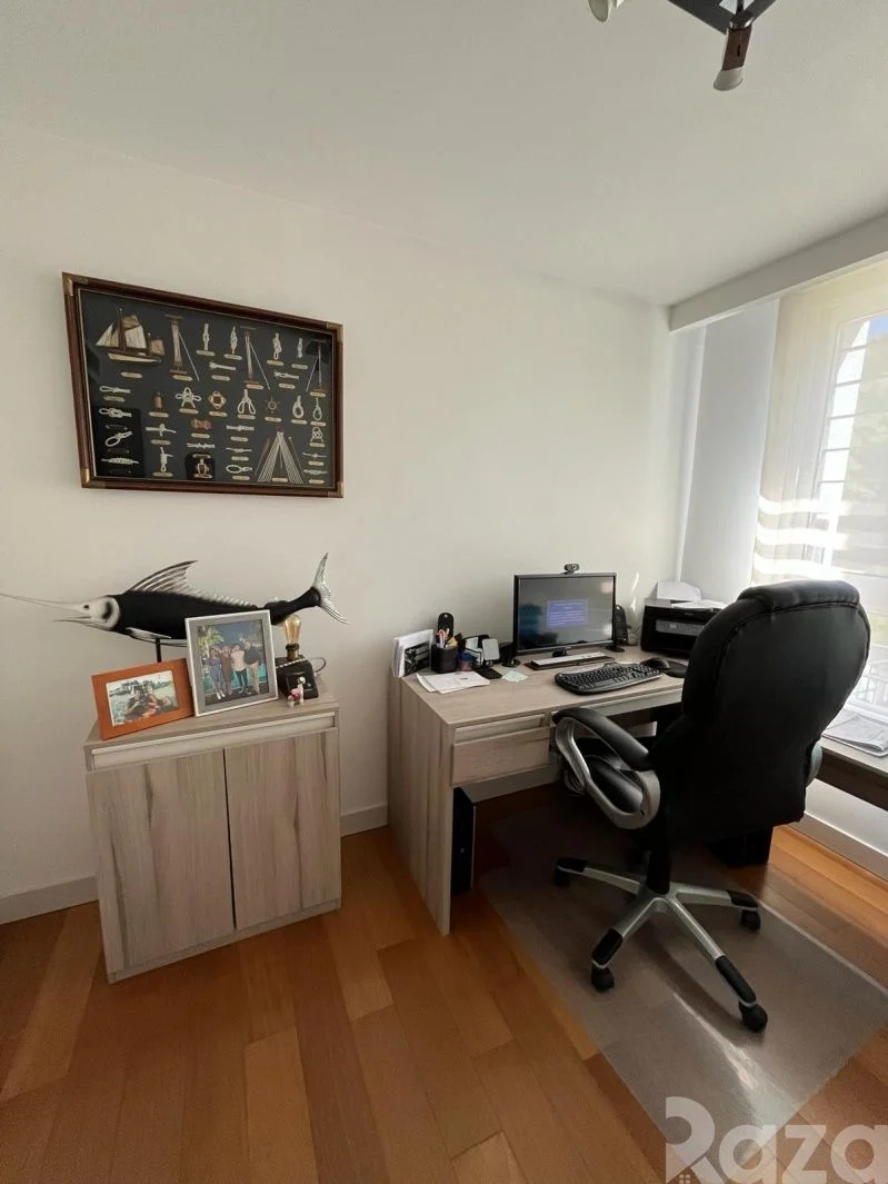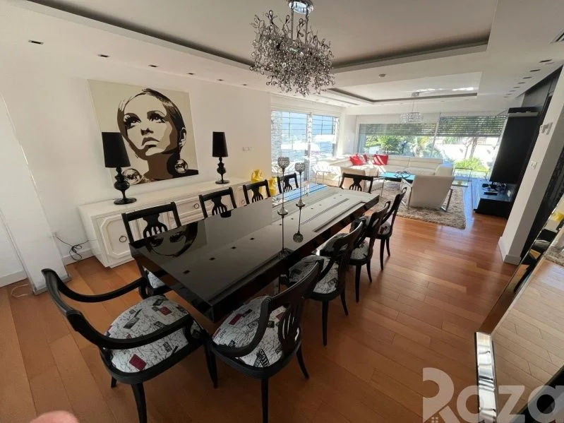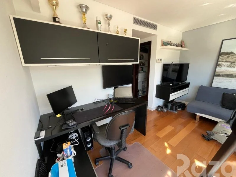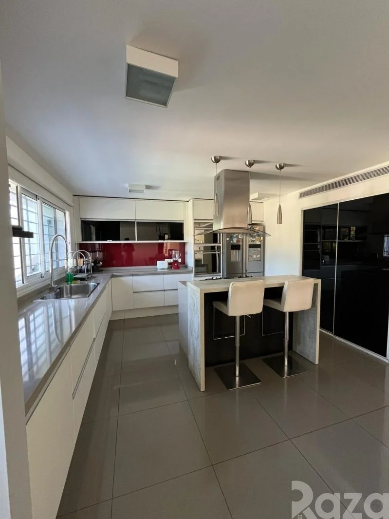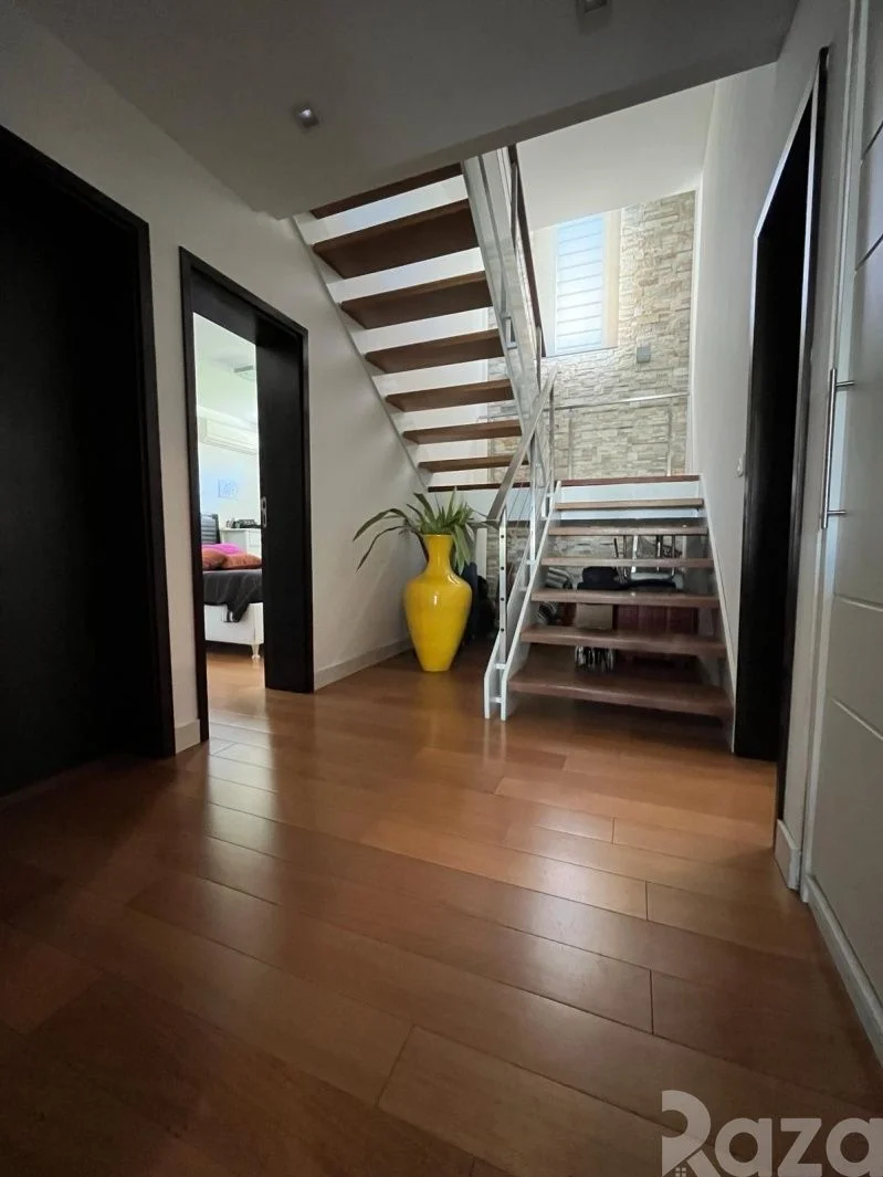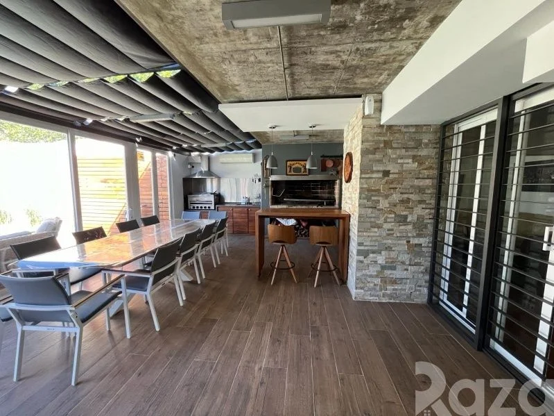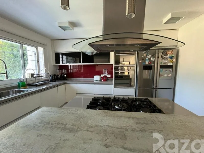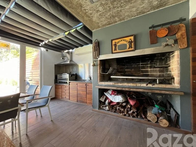 En su nivel inferior cuenta con 1 dormitorio, 1 baño completo y kitchenette. En planta baja cuenta con lavadero equipado y una amplia barbacoa con acceso a terraza y al jardín. Conectando con su amplio jardín trasero con piscina climatizada y su hermosa área verde.