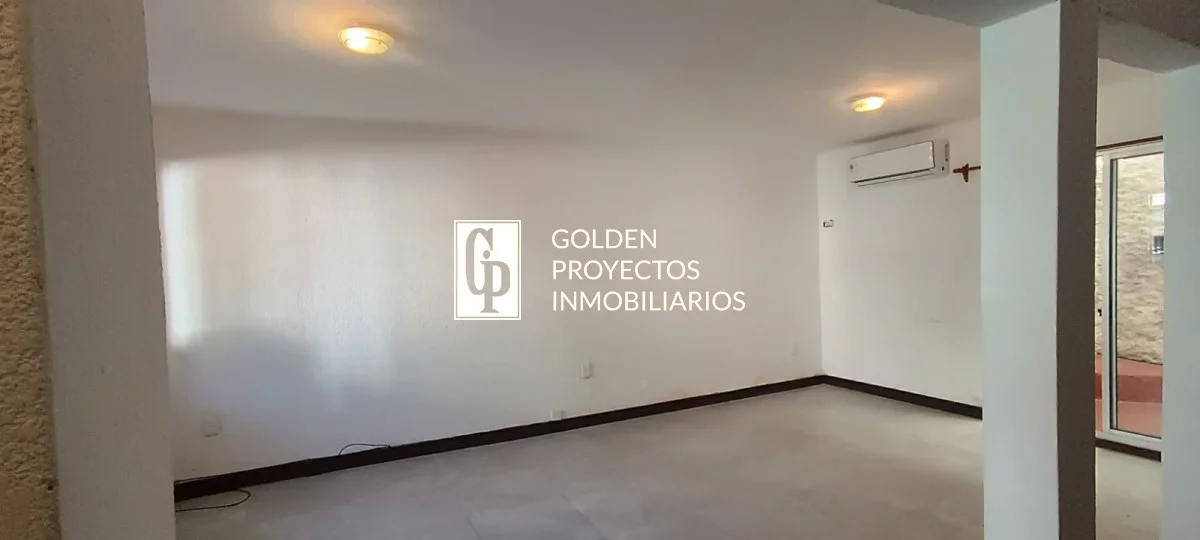 Ofrece un amplio living comedor con aire acondicionado y pisos de porcelanato, con salida al patio interno.