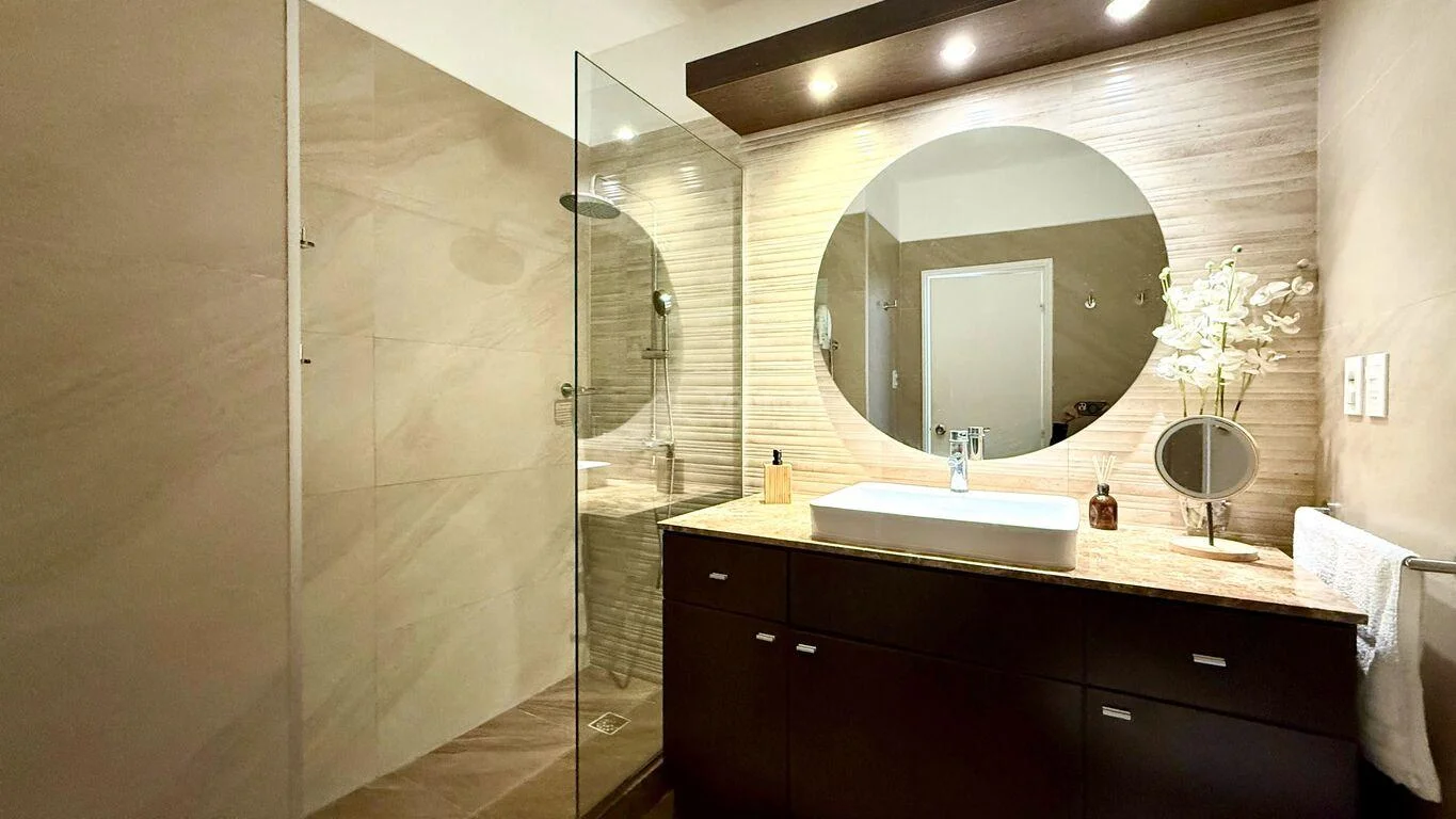 Barbacoa amplia al fondo con parrillero, estar integrado, un dormitorio adicional, baño completo y depósito.