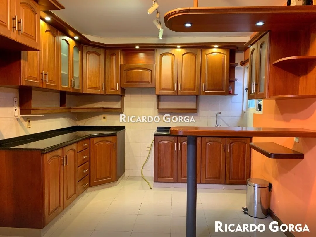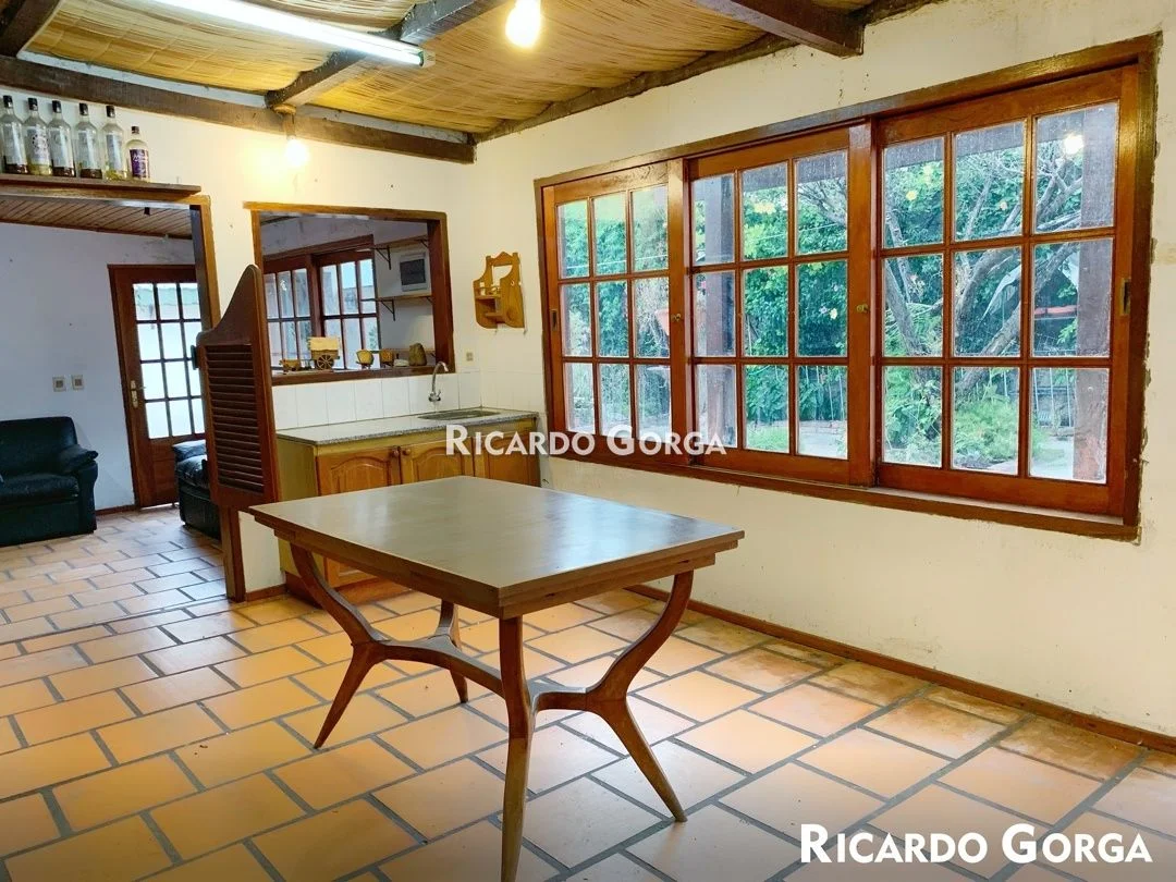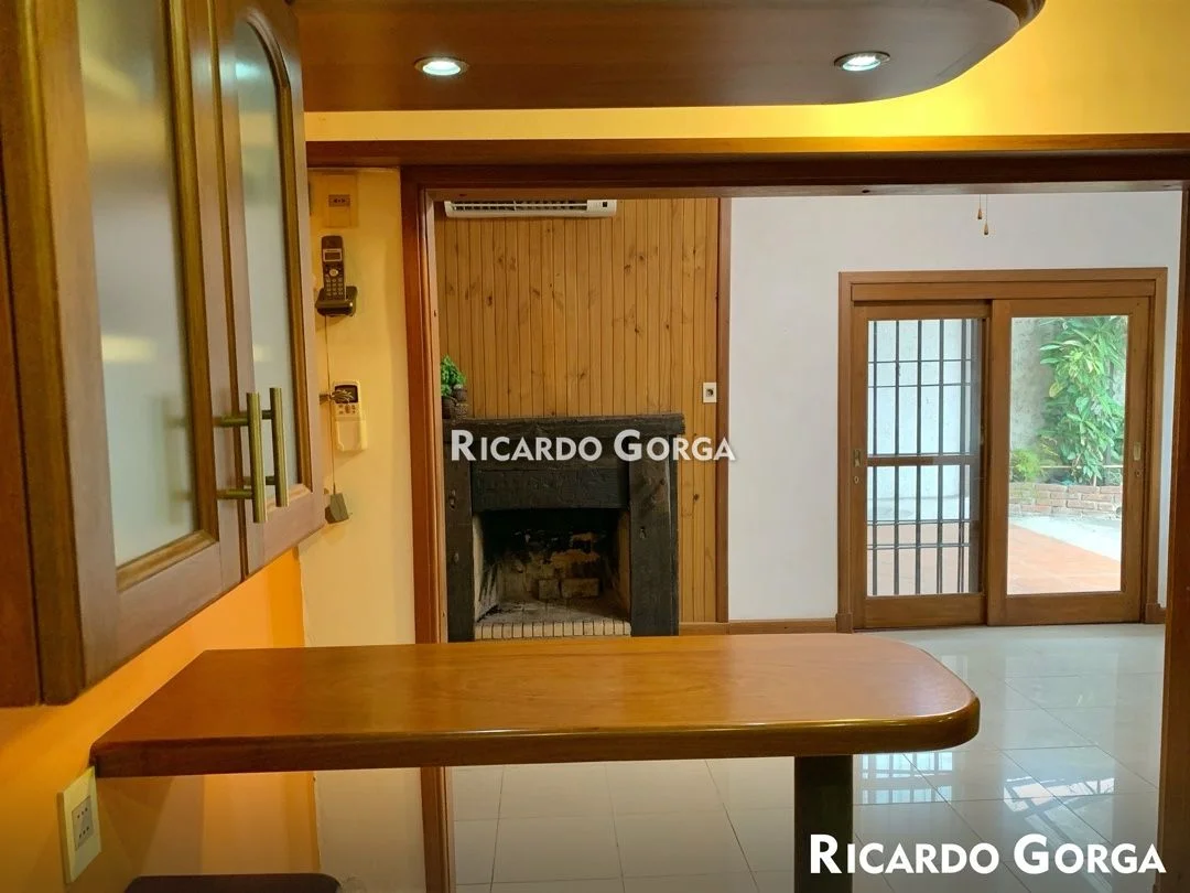 Amplia cocina comedor diario con mueble bajo y sobre mesada, mesada de granito, doble pileta, grifería mono comando y ventanal salida a fondo. Posee estufa a leña, aire acondicionado y barra desayunadora.