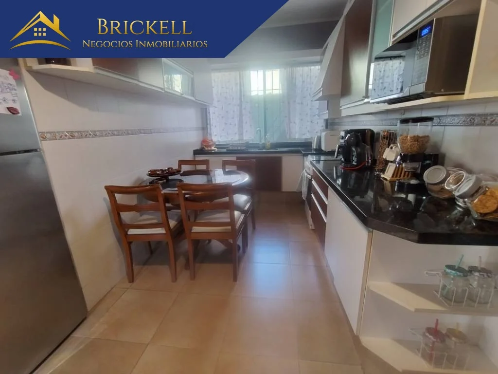 La cocina definida tiene un desayunador y mucha capacidad de almacenamiento,