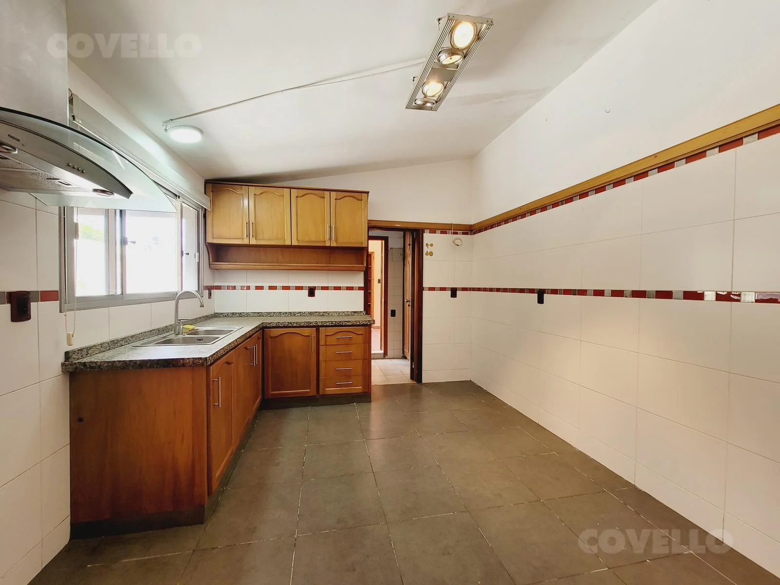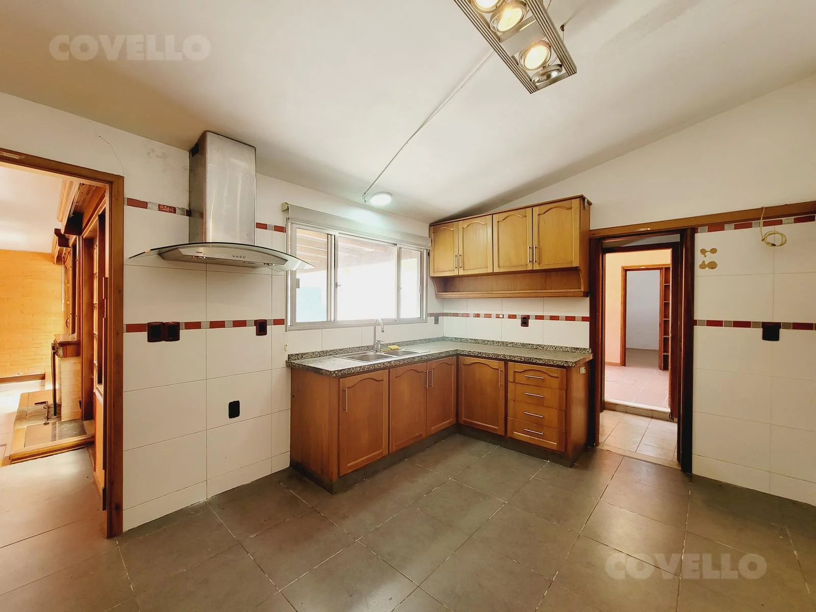Cuenta con un gran living comedor con estufa a leña, estar diario, y una cocina definida muy cómoda, con salida a un apartamento de servicio completo. Dispone de tres dormitorios, dos baños y toilette.