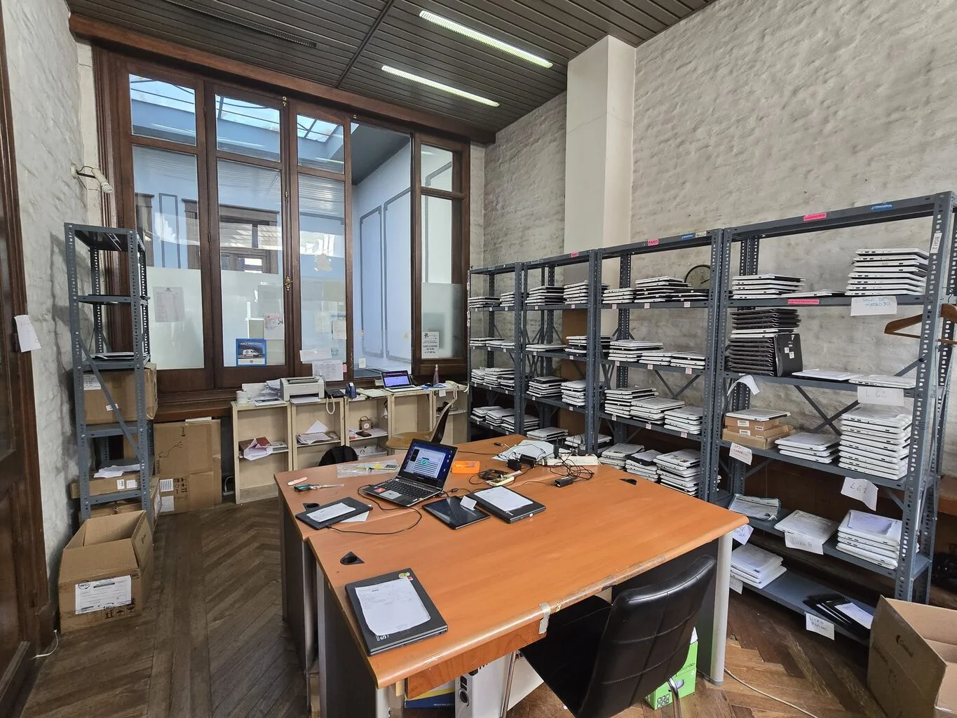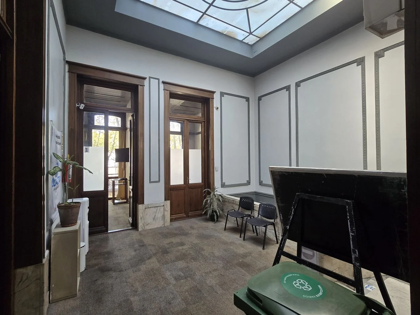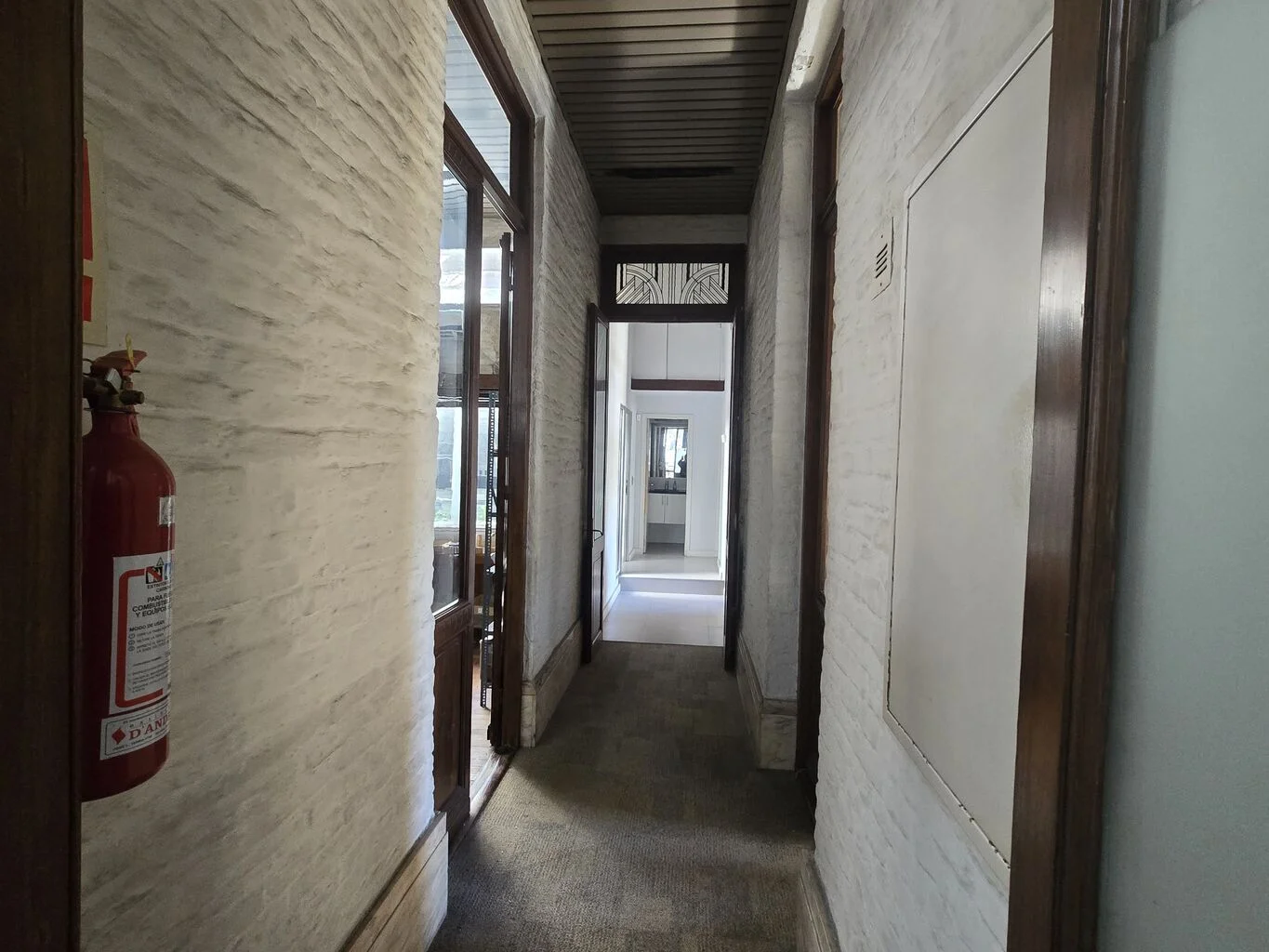 Al ingresar a la planta se ubica su hall/ recibidor super amplio. Desde él  nos comunicamos a las primeras oficinas de la casa, donde se logran captar 3/4 oficinas. Hacia el final de la planta se ubican más oficinas, ( 3 mas ) y además espacio de entrepiso con deposito. También ofrece una moderna cocina comedor y 2 baños completos actualizados. Todas las oficinas dan hacia la calle menos una de ellas que observa hacia patio interno de aire y luz. Casona antigua llevada a lo moderno destacando ampliamente su sólida construcción de la época.