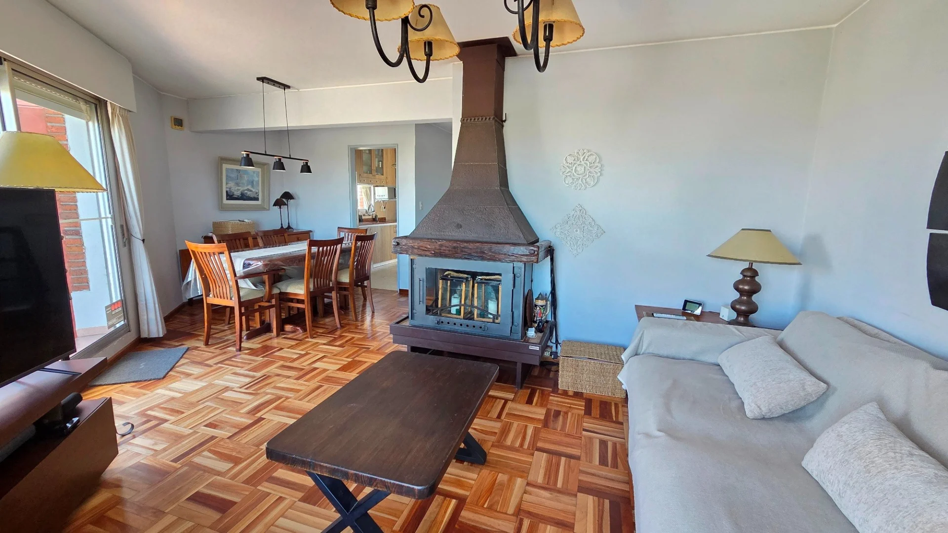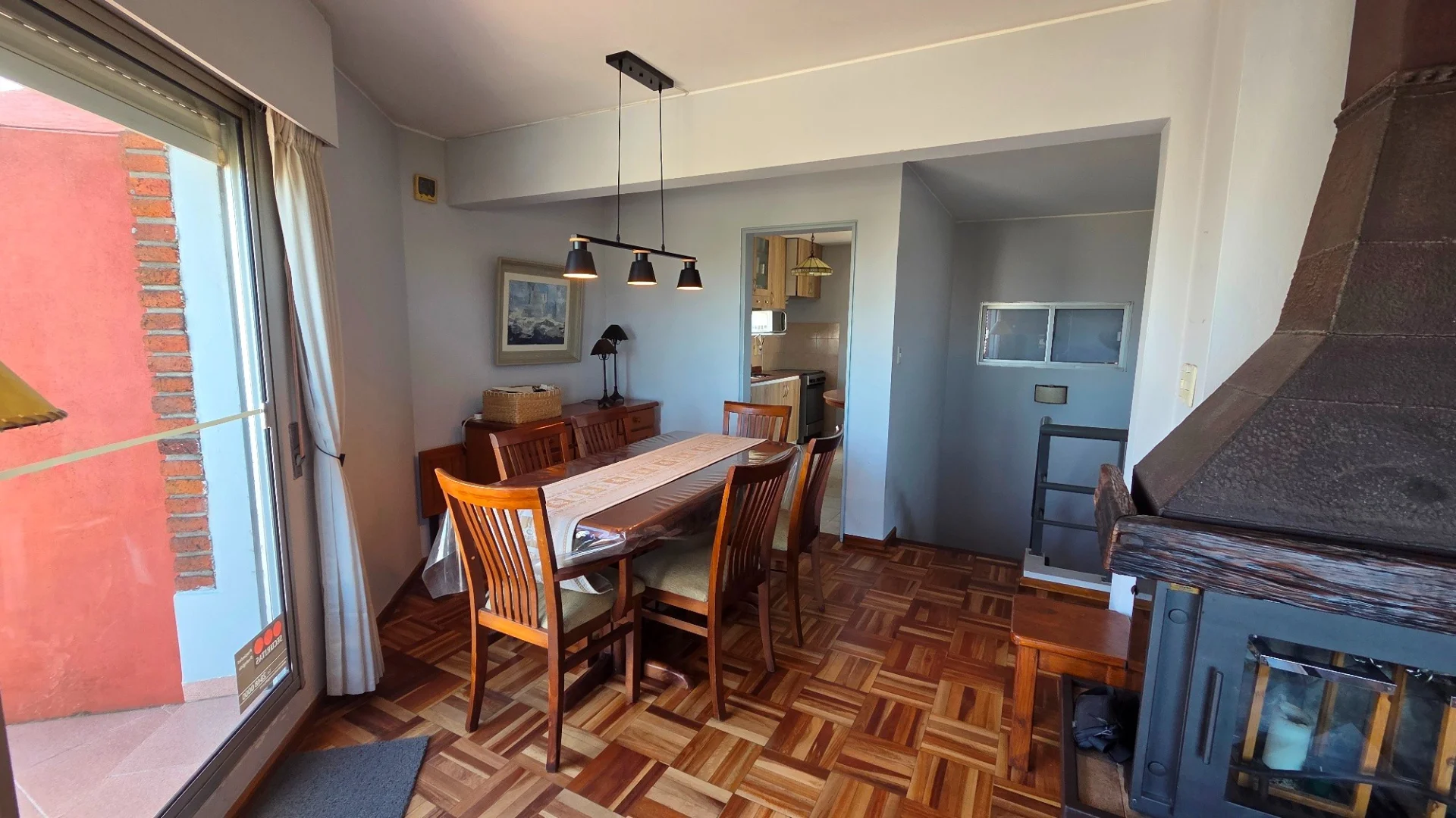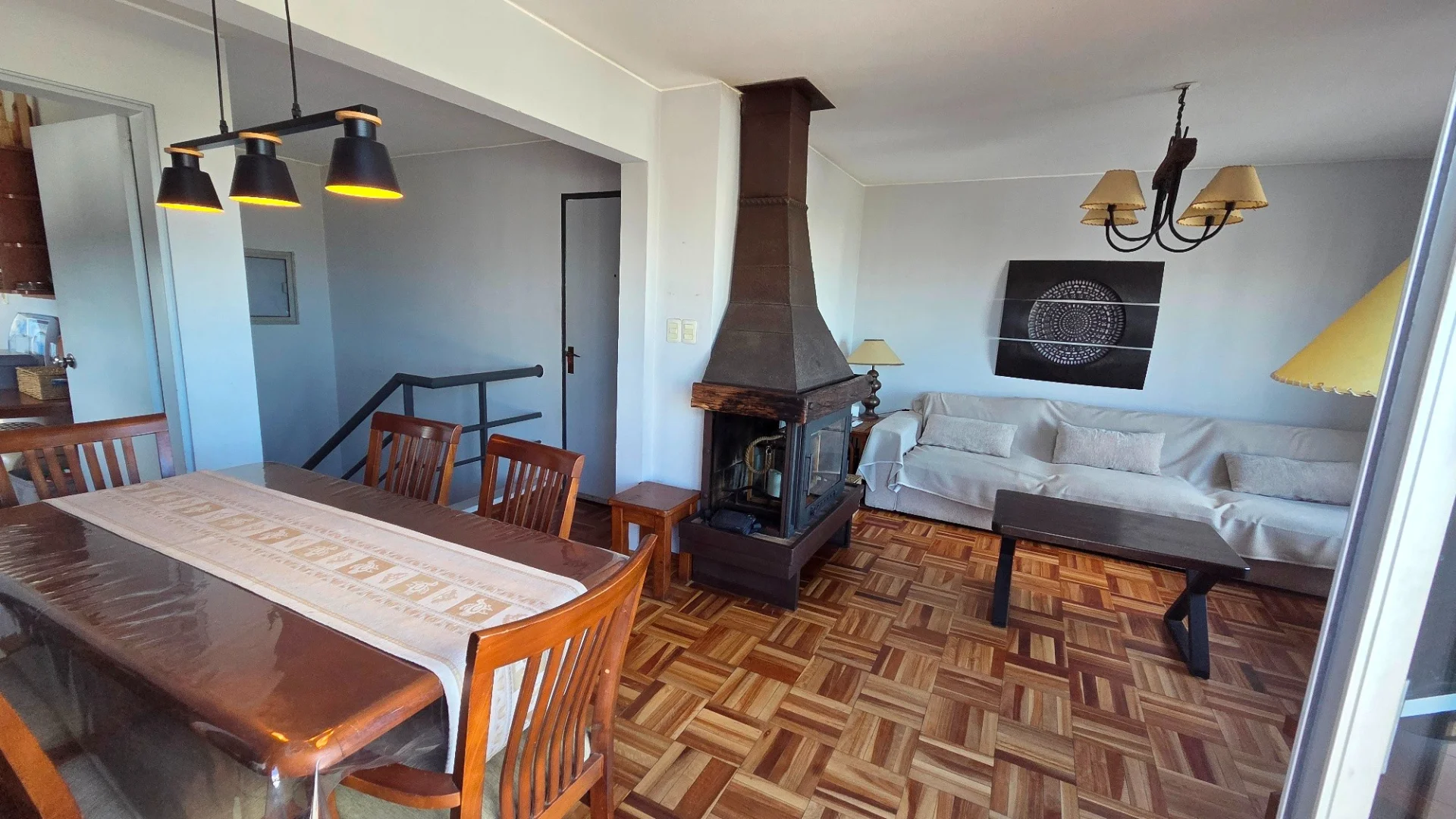 En planta alta, la propiedad ofrece un confortable living comedor con pisos de parquet en impecable estado, estufa a leña en hierro tipo calefactor que aporta calidez y estilo, y salida a amplias terrazas que rodean la unidad, brindando una vista panorámica inigualable. Dispone además de parrillero, ideal para disfrutar todo el año. Cocina definida, funcional, con acceso a terraza propia.