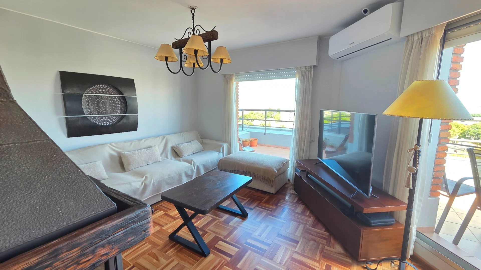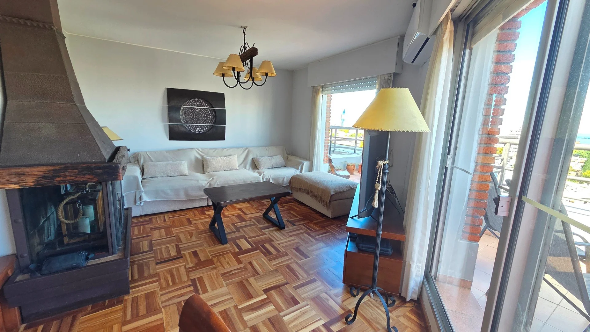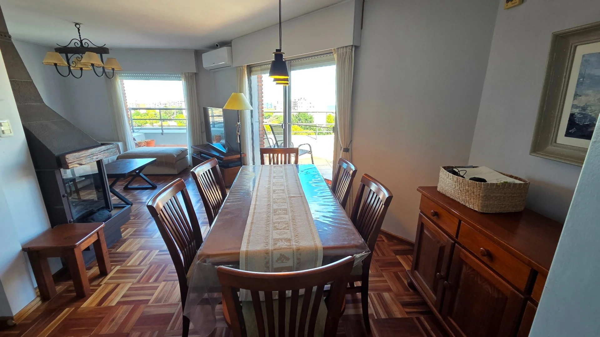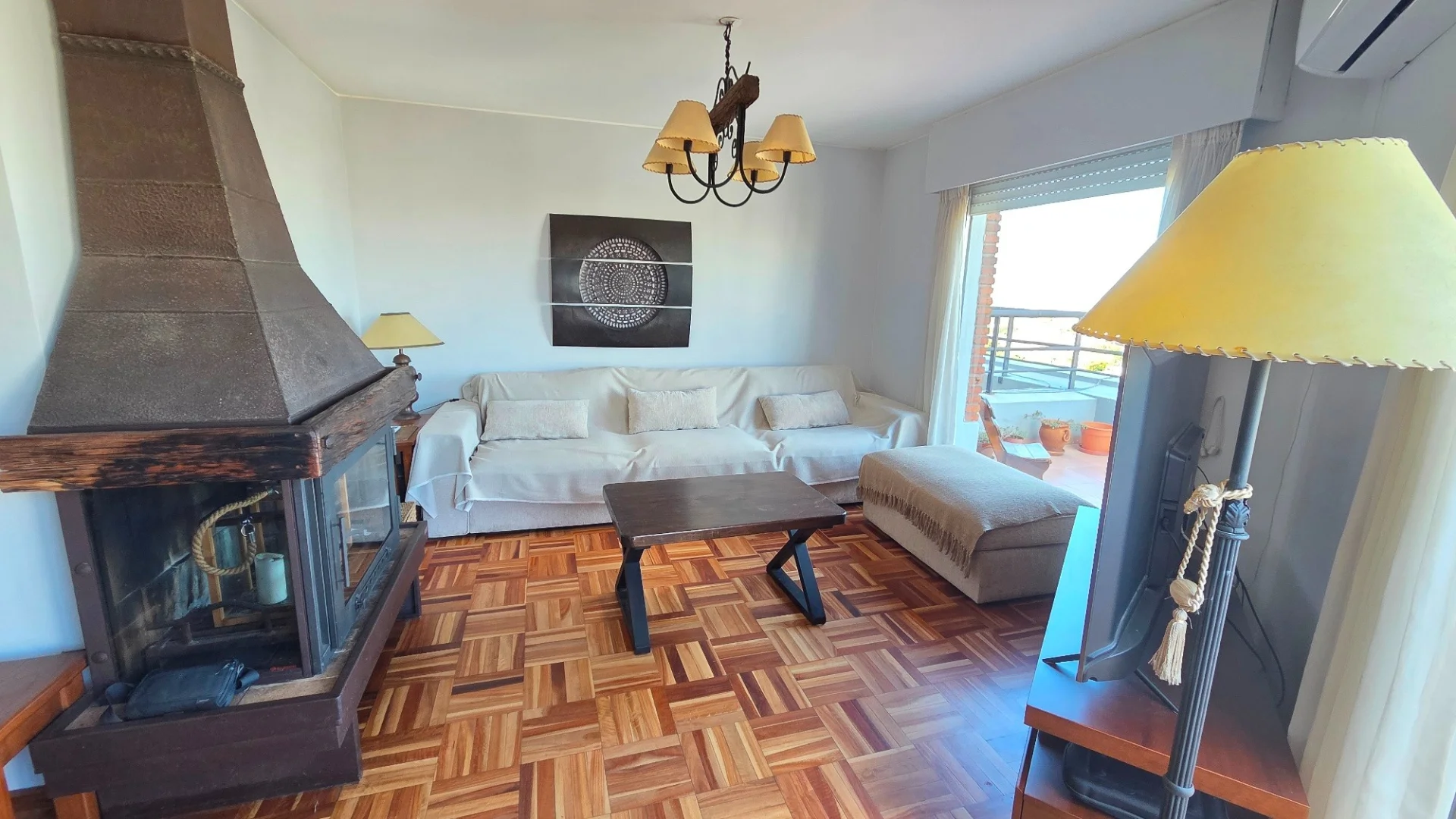 En planta alta, la propiedad ofrece un confortable living comedor con pisos de parquet en impecable estado, estufa a leña en hierro tipo calefactor que aporta calidez y estilo, y salida a amplias terrazas que rodean la unidad, brindando una vista panorámica inigualable. Dispone además de parrillero, ideal para disfrutar todo el año. Cocina definida, funcional, con acceso a terraza propia.