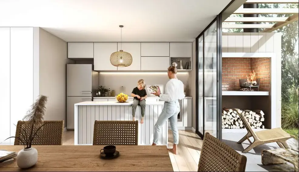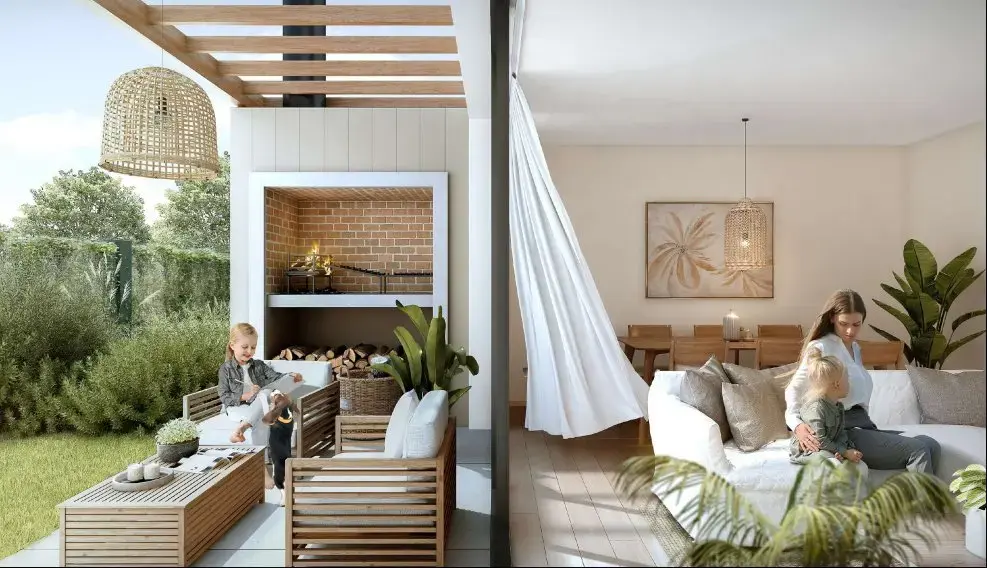 Un barrio jardín con arquitectura moderna, excelente distribución y mucha luz natural.