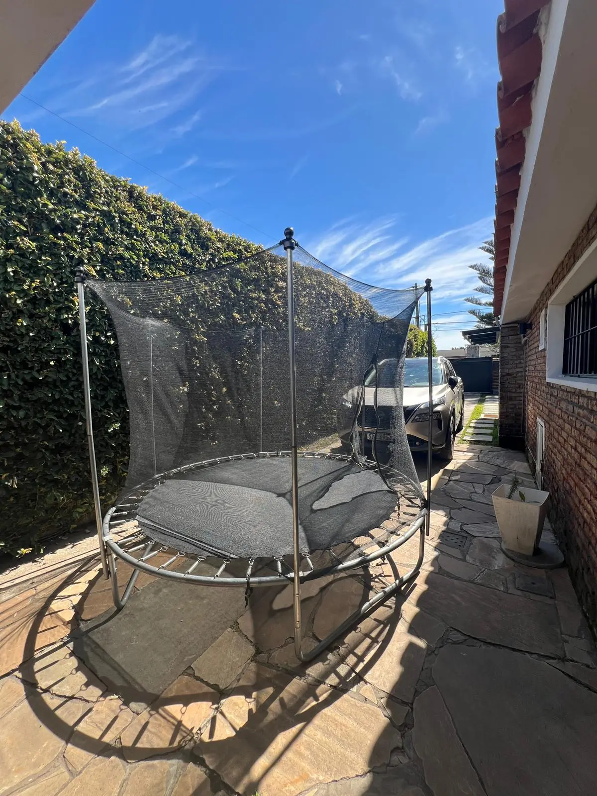 La seguridad es primordial, con un cerramiento perimetral que garantiza tranquilidad. Además, la propiedad dispone de una entrada lateral con portón automatizado para cuatro vehículos y un práctico depósito con conexión para lavadora y espacio de almacenamiento adicional para bicicletas y otros enseres.