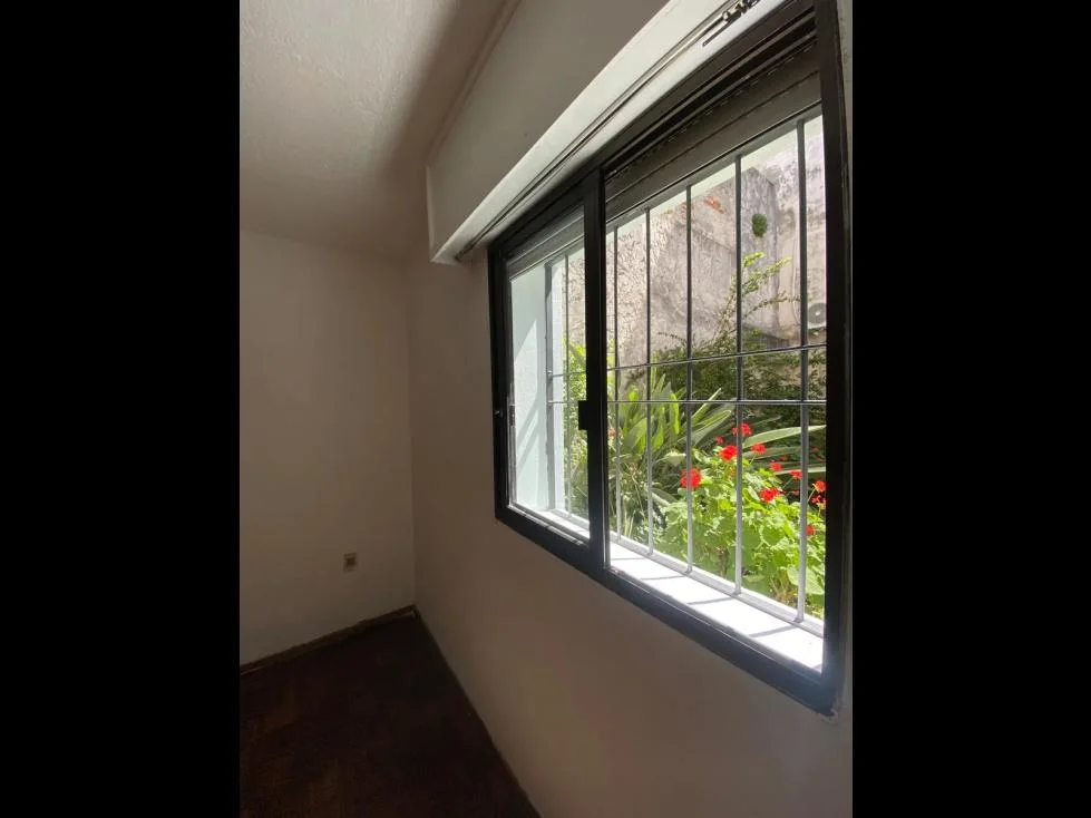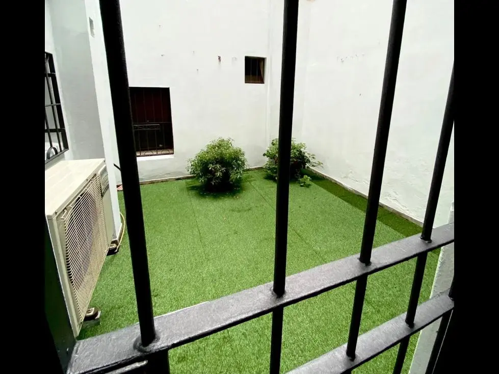 Luminoso living comedor con puerta-ventana hacia un patio común