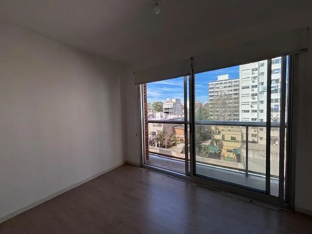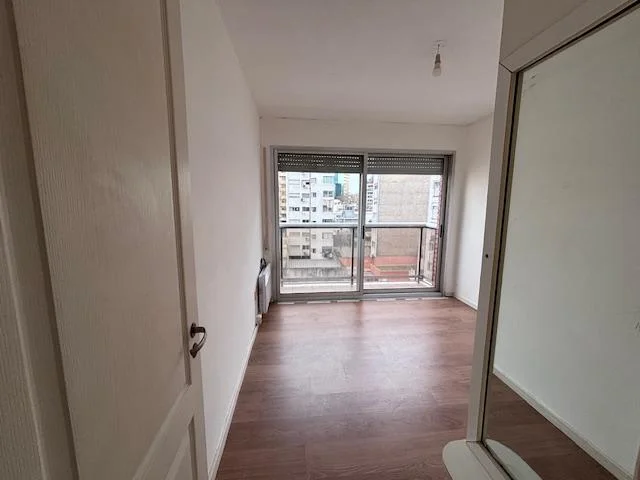 Unidad de 1 dormitorio ubicada sobre la calle Sarmiento a mtros de 21 de Setiembre. Rodeado de servicios. Apartamento al contrafrente, cuenta con cocina integrada, living y dormitorio con salida a una terraza. Se ubica en un 6to piso, con vistas despejadas. Pisos flotantes, calefacción individual eléctrica por radiadores, y un calefón ya instalado. El edificio cuenta con Barbacoa de uso común, y portería 24 hrs. OPCIONALMENTE : alquiler con garage ( $ 27.000 + $ 9000 gtos comunes )