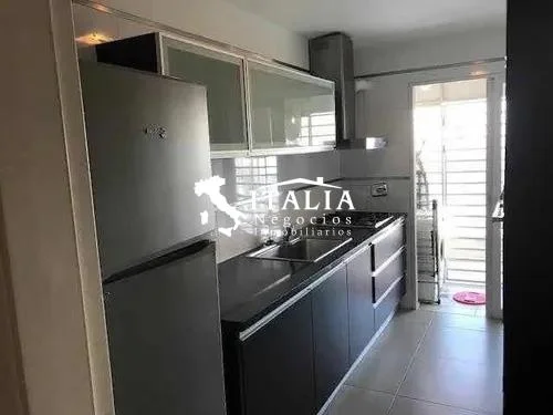 Cómoda cocina definida equipada c0n anafe, horno y campana.
