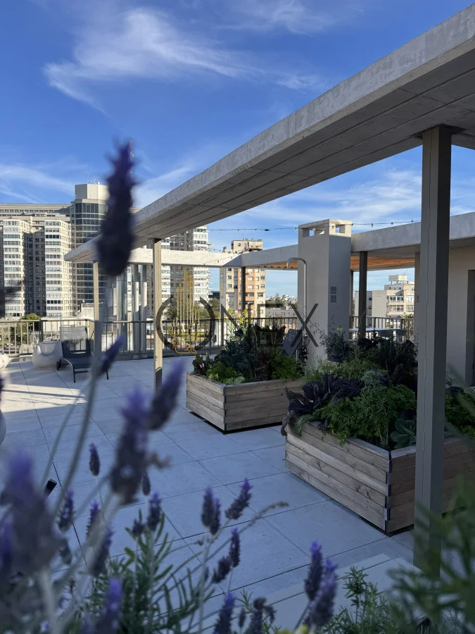 Cuenta con una terraza privada de 24 mts2 que queda subiendo 1 piso por ascensor o escalera, un hermoso lugar para disfrutar al aire libre y decorar a gusto de quien lo habite.
