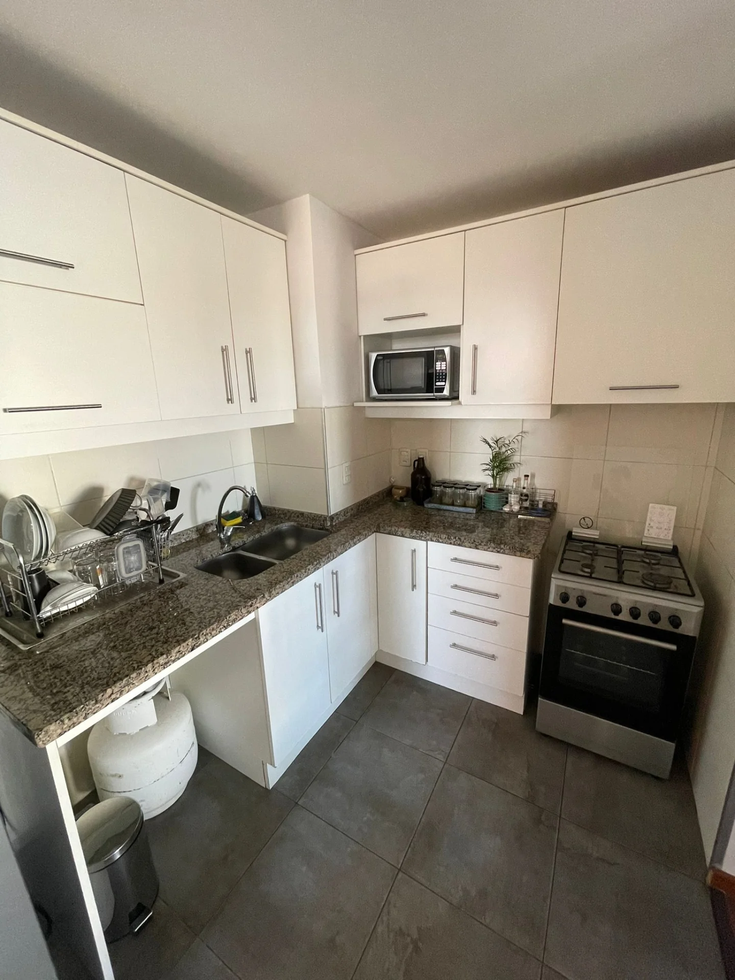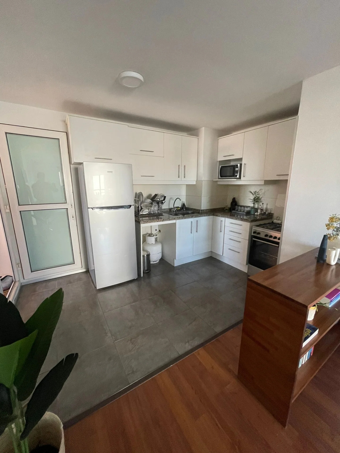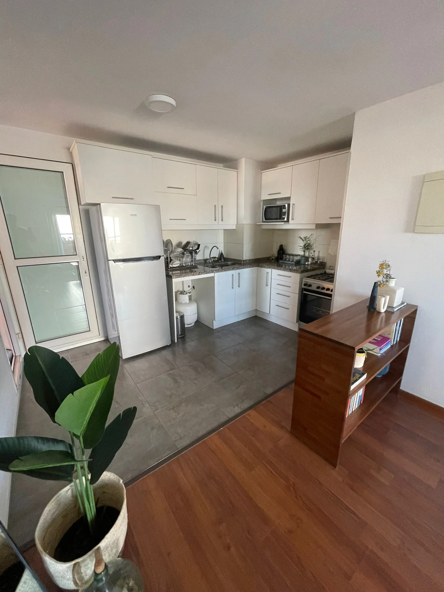 La unidad consta de un generoso living comedor con cocina integrada al living con placares sobre y bajo mesada (ideal para colocar una mesa funcional como se observa en las fotos), 2 dormitorios, baño, terraza de uso exclusivo, terraza lavadero con conexión para lavarropas.