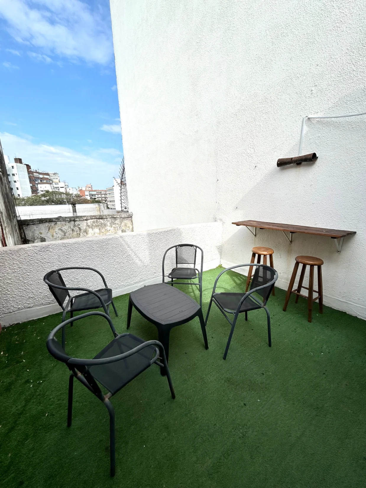 Monoambiente de aproximadamente 20 m² + terraza privada con parrilero
