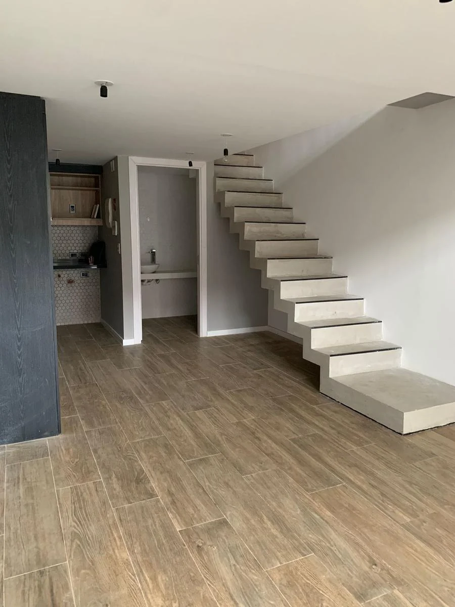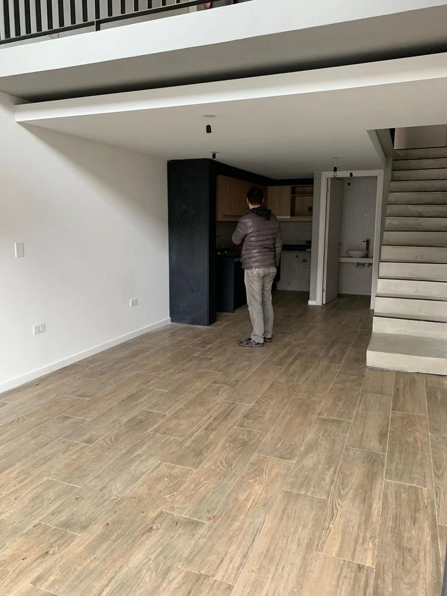 Amplio living comedor, cocina integrada con placares bajo y sobre mesada, horno anafe y campana. Ventanales de piso a techo y pared a pared. Sector del comedor en doble altura. Baño social.