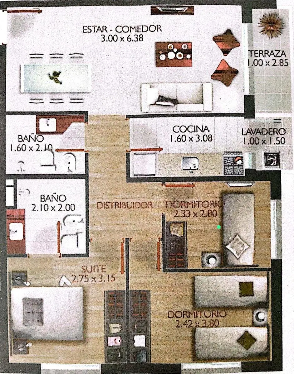 Un enorme predio de 22.000 metros cuadrados (m2) en pleno corazón del Prado alberga a Town Park, un ambicioso proyecto inmobiliario pensado para alojar familias que desean vivir en un entorno rodeado de naturaleza, seguro y en un clima de comunidad. Juegos para niños: Espacios seguros y divertidos para los más pequeños. Cancha polideportiva: Ideal para practicar diferentes deportes y actividades físicas. Barbacoas, Cocina definida, equipada con muebles bajo mesada y sobre mesada, campana extractora y acceso hacia la terraza lavadero con previsiones para calefón y lavarropas. Tres amplios dormitorios. Garaje Seguridad perimetral, 24 horas. Minimarket