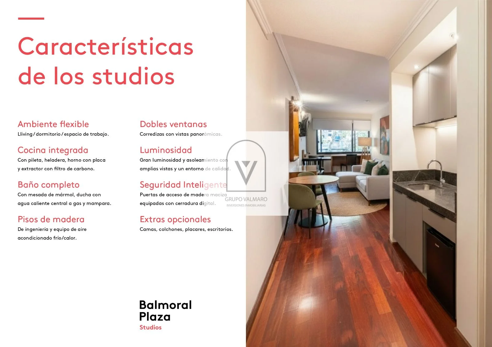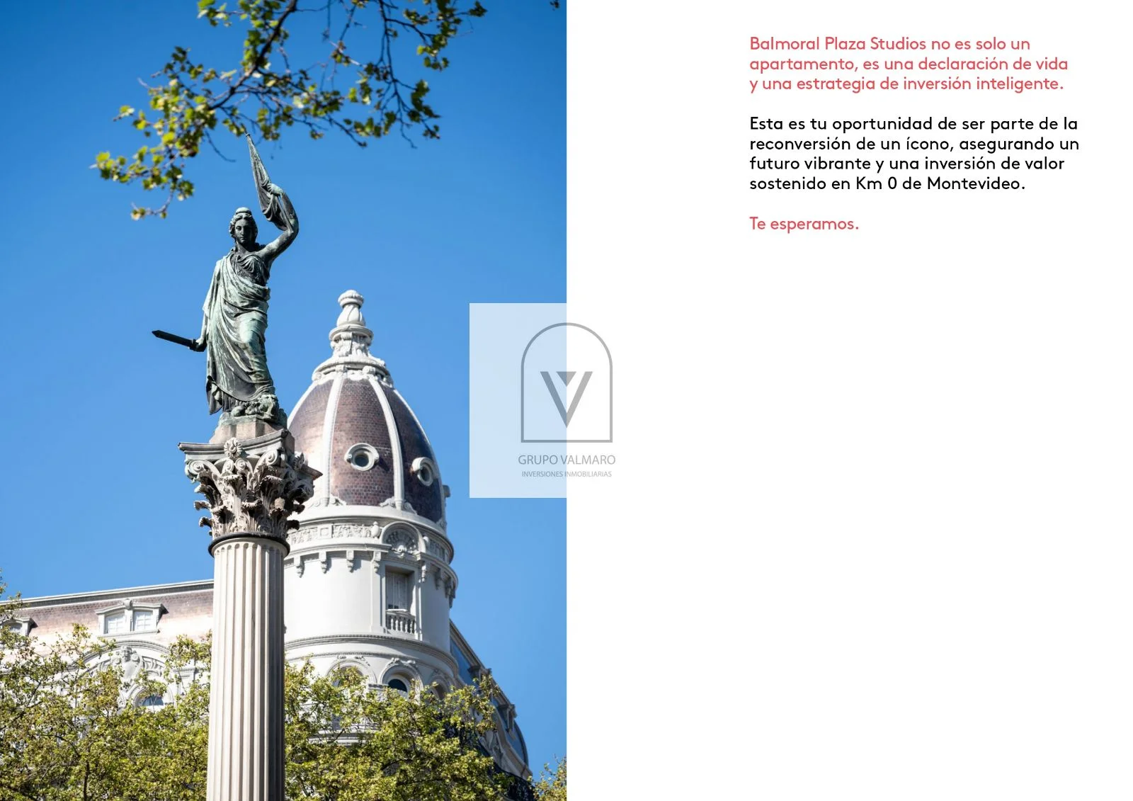 Balmoral Plaza Studios, ubicado frente a la emblemática Plaza Cagancha, representa la reconversión de un ícono en el corazón de Montevideo. Este moderno desarrollo ofrece una oportunidad única para inversores, estudiantes o profesionales que buscan un espacio versátil y luminoso.