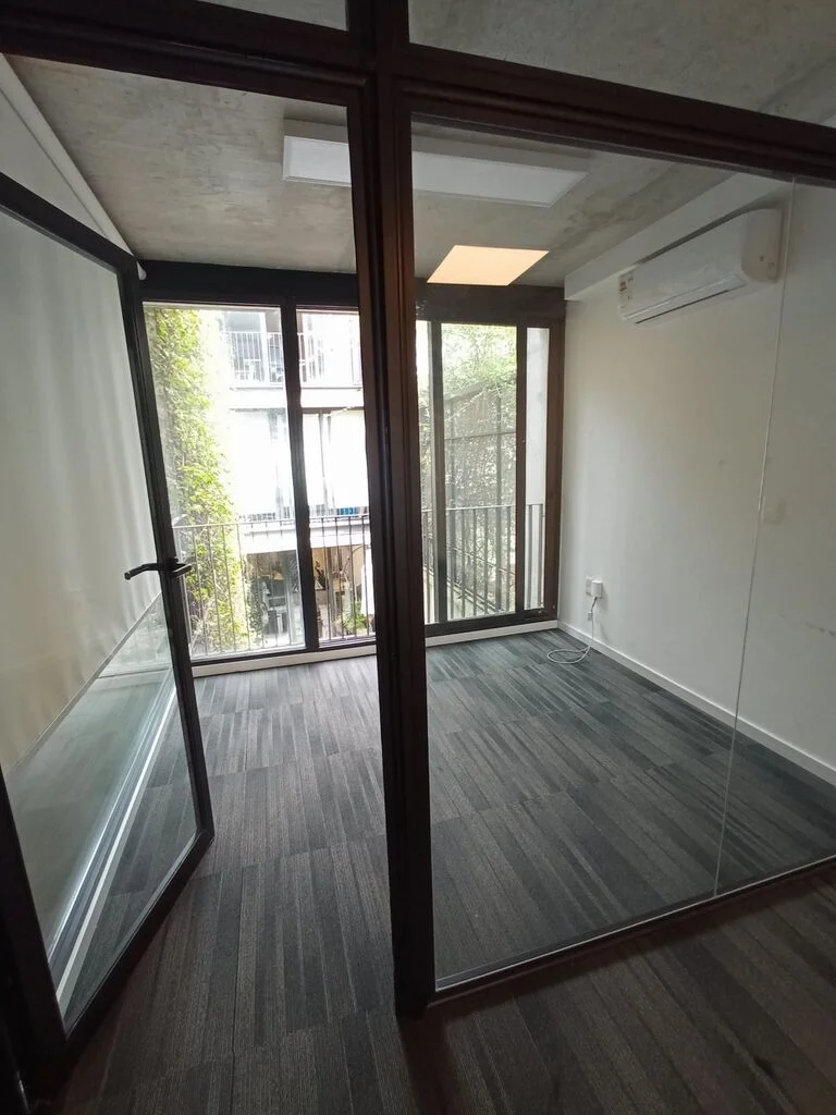 Distribución: Oficina pequeña, espacio central amplio, oficina grande / salón de reuniones. Zona de cocinita ideal para colocar heladera y microondas. Baño doble.