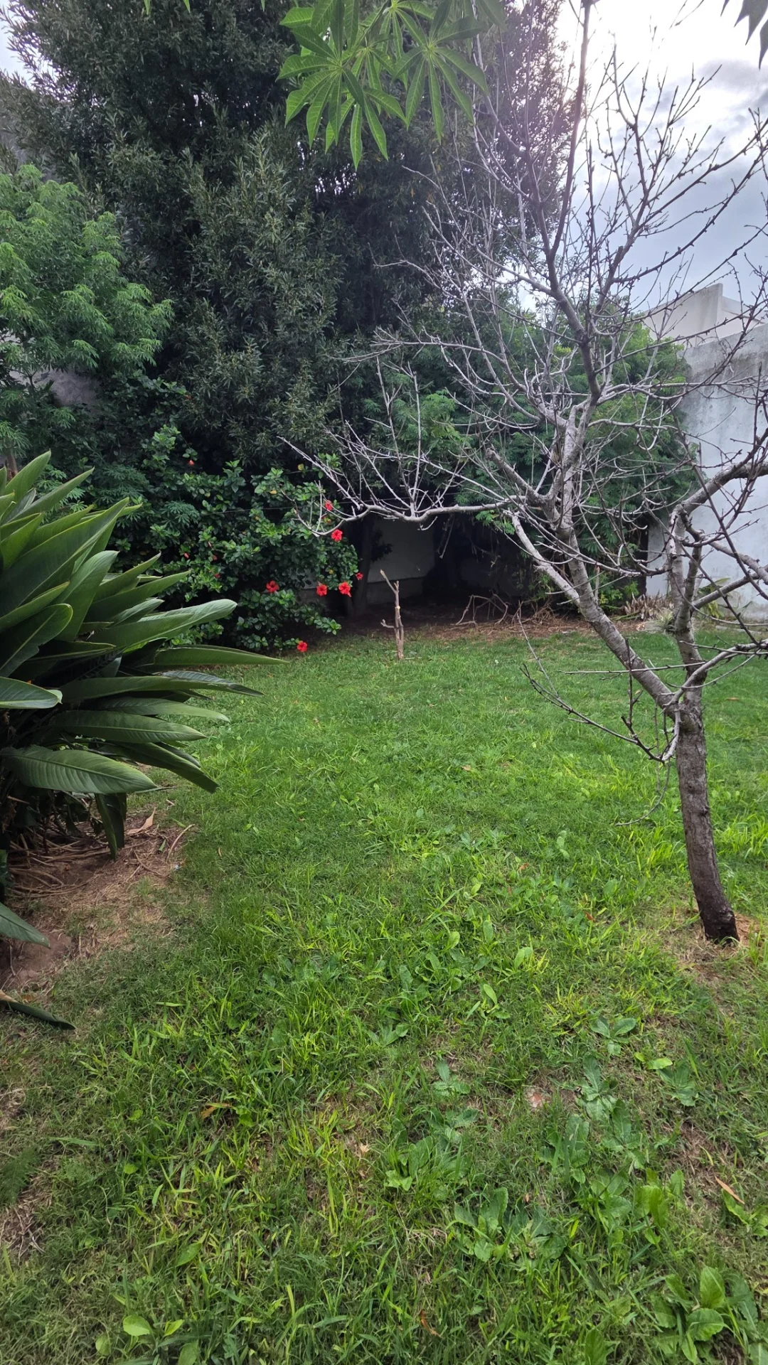 El diseño se complementa con un acogedor patio de piedra laja, y un fondo adornado con áreas ajardinadas, y árboles, ofreciendo un oasis privado al aire libre.