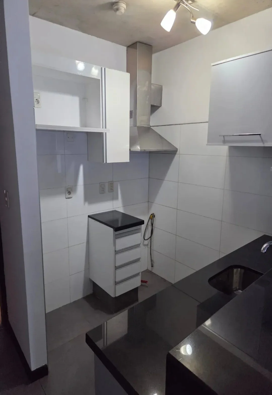 El apartamento cuenta con una moderna cocina compacta equipada con una práctica barra estilo americano, optimizando el espacio y la funcionalidad.