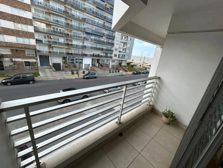 Living comedor amplio con acceso a balcón con vista al mar, equipado con rejas de seguridad.