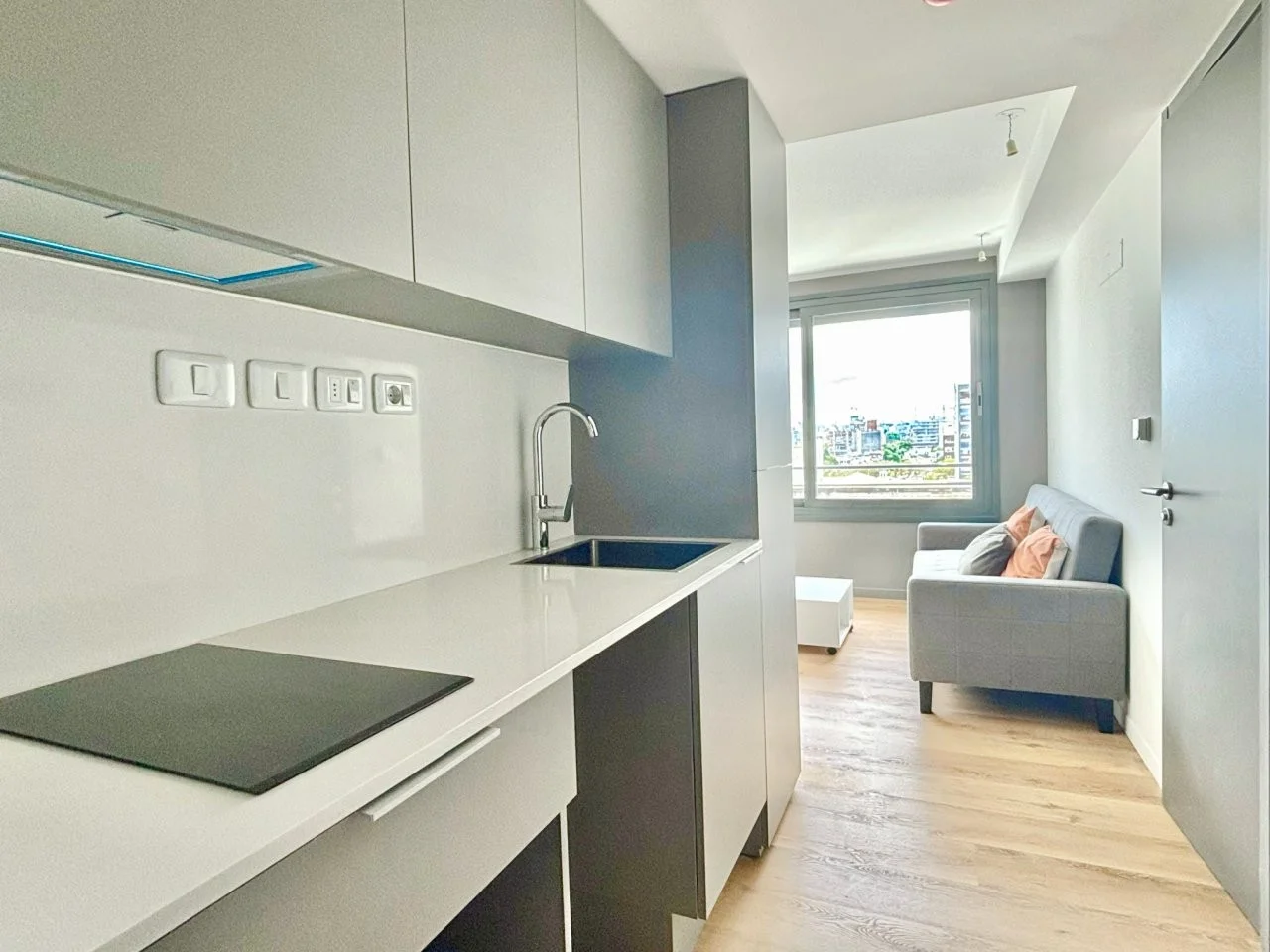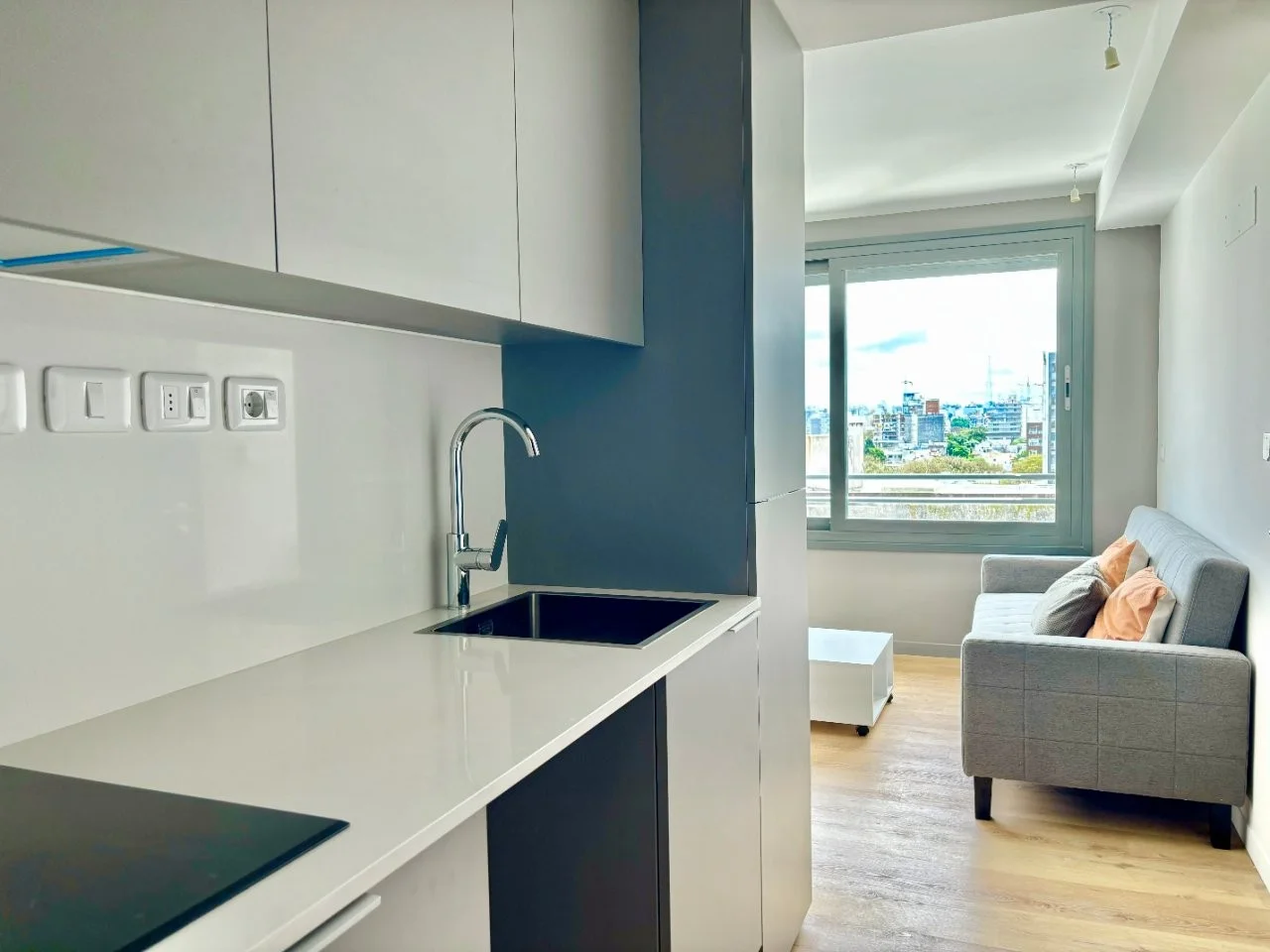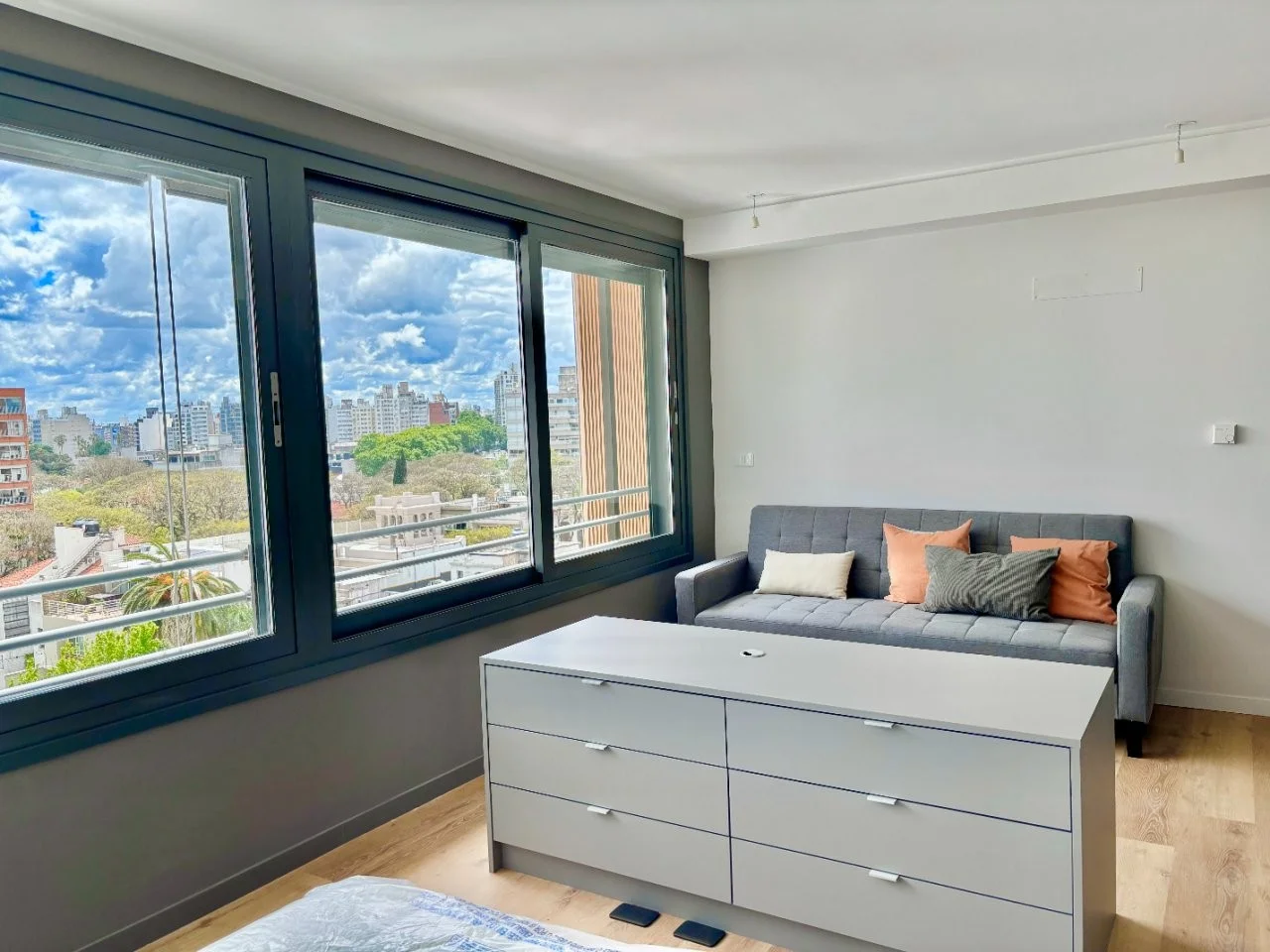 Ambiente amplio muy apaisado con grandes ventanales que da para dividir en dormitorio y estar. Kitchenette y baño completo.