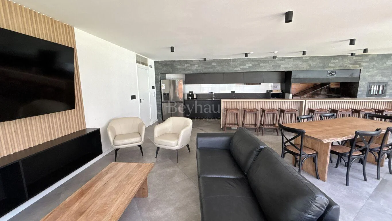 Dispone de un cómodo living-comedor integrado a una moderna cocina con isla.