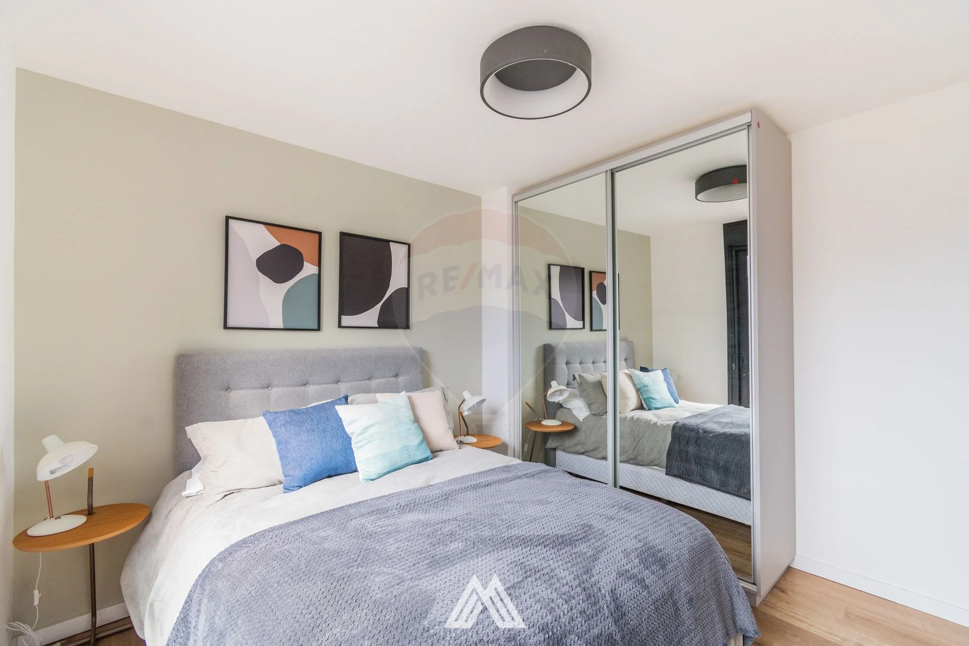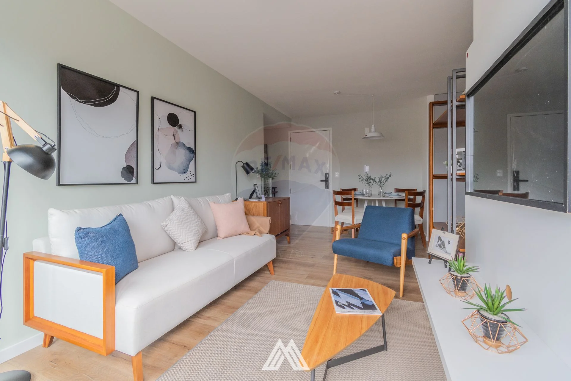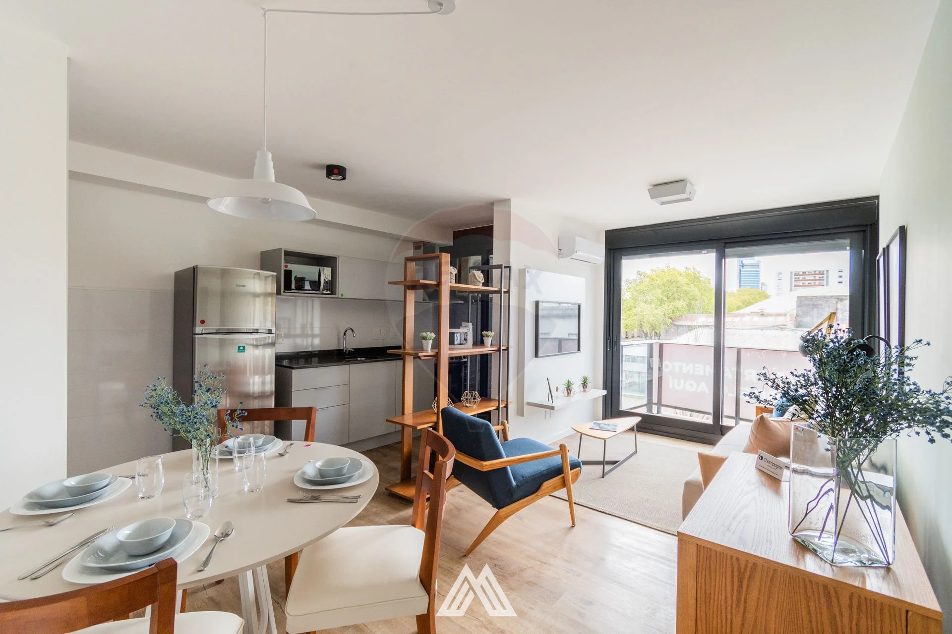 El apartamento cuenta con living comedor con acceso a terraza. Cocina integrada con gran espacio para almacenaje, mueble aéreo y bajo mesada y salida a terraza de servicio. Hall de distribución con nicho con conexiones para calefón y lavarropas. 2 dormitorios. Baño completo con mueble bajo mesada y espejo. Aire acondicionado en living y previsión en dormitorios. Pisos de listones vinílicos de alto tránsito símil madera, y porcelanato en baño y terrazas. Aberturas de aluminio color negro, vidrios DVH y cortinas de enrollar. Cerradura digital con apertura mediante código, tarjeta o huella.