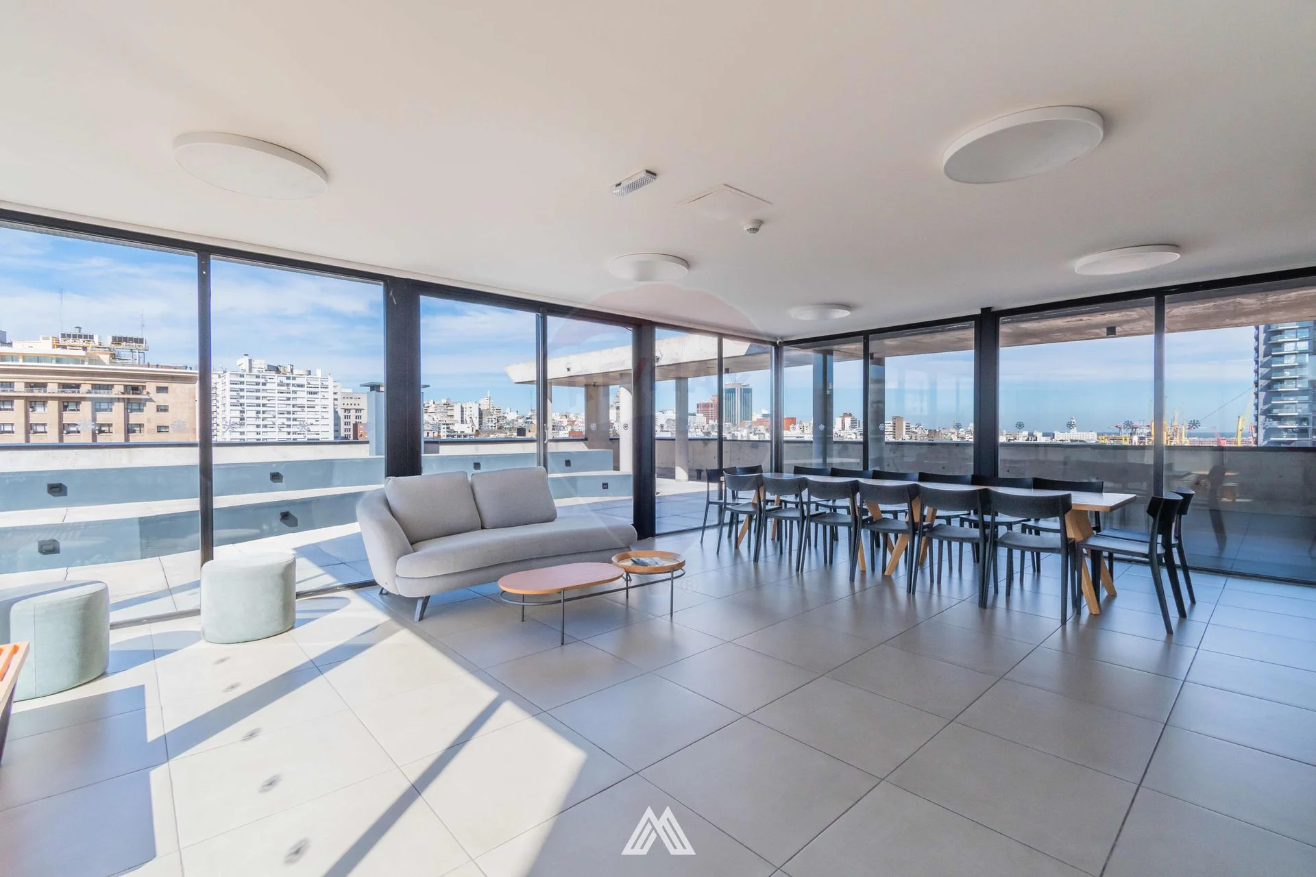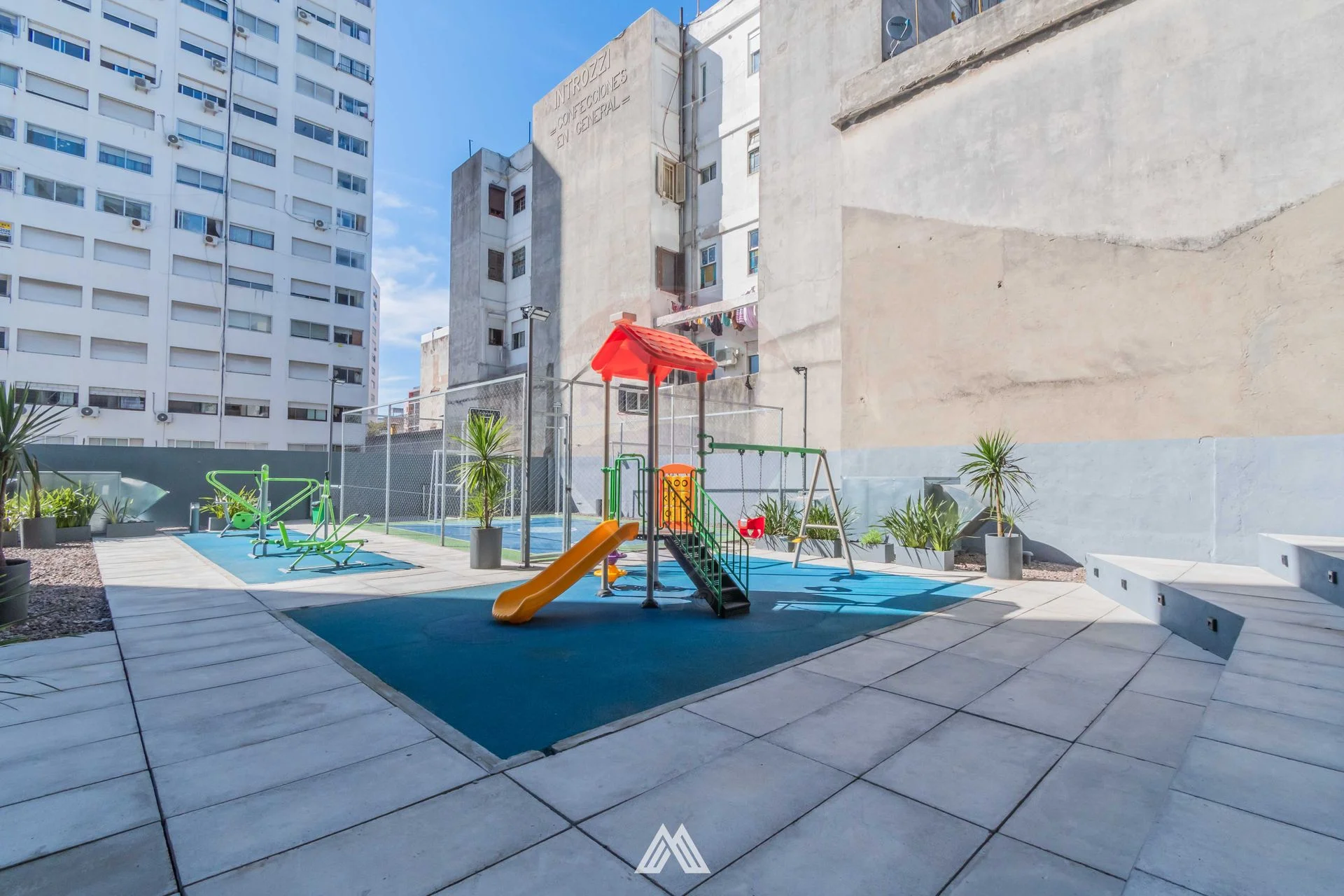 El edificio cuenta con hall de acceso y recepción, CCTV, 3 ascensores. Patio central en el 1er piso con equipamiento fitness, juegos para niños, multicancha y pet garden. En el último nivel, dos Salones de Usos Múltiples con parrillero, cocina y baño con accesibilidad universal, equipados para funcionar como espacio de co-working, con una amplia terraza perimetral y solárium con excepcionales vistas panorámicas. 4 niveles de garages con acceso mediante Tag. Previsión para la instalación de paneles solares para precalentamiento de agua para uso sanitario.