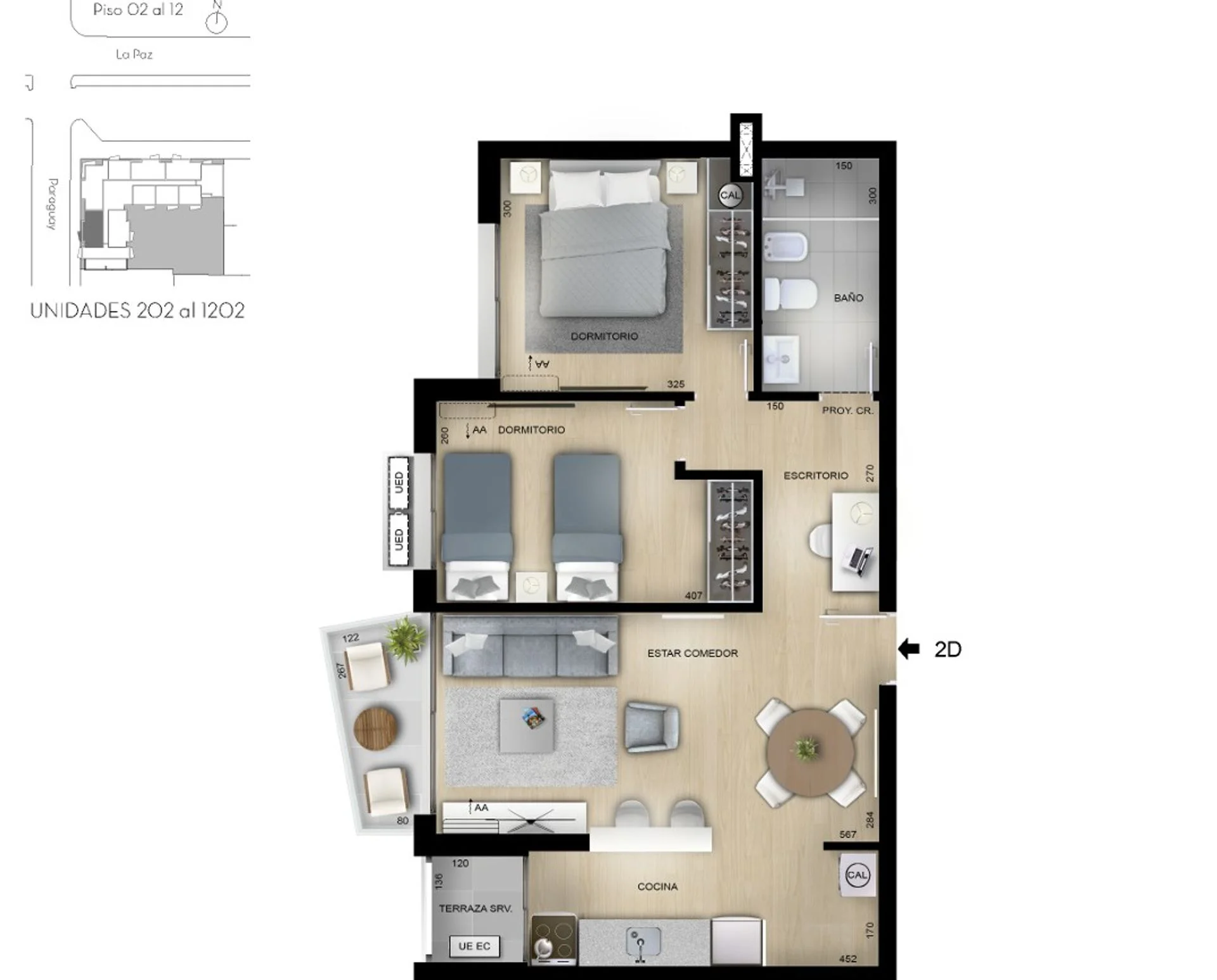Estrene apartamento de 2 dormitorios en NOSTRUM CENTRAL, ubicado en la esquina de La Paz y Paraguay, próximo a la Bahía de Montevideo y a Avenida del Libertador. Cuenta con los beneficios fiscales de la ley de vivienda promovida. Unidad, al frente por calle Paraguay.