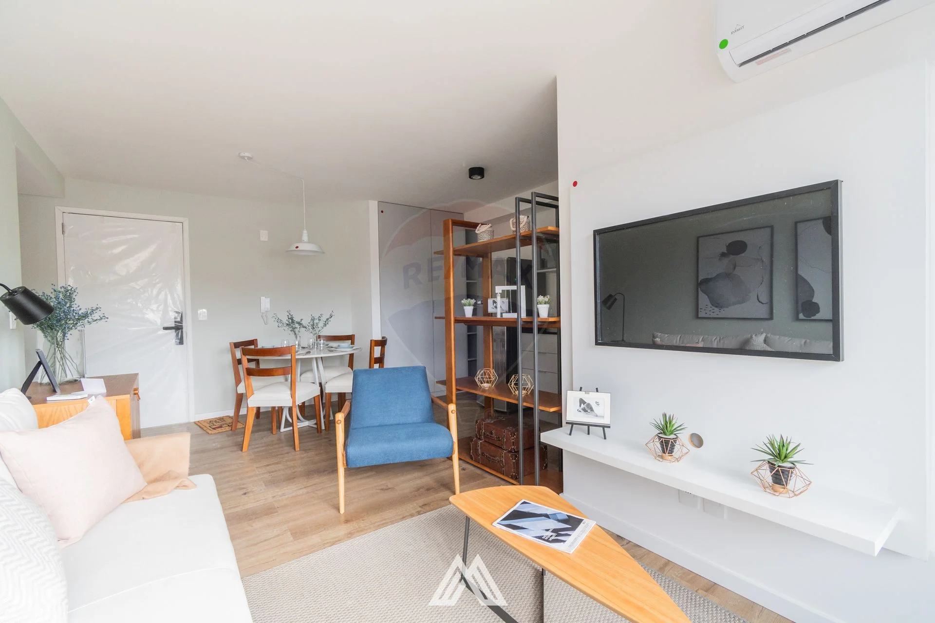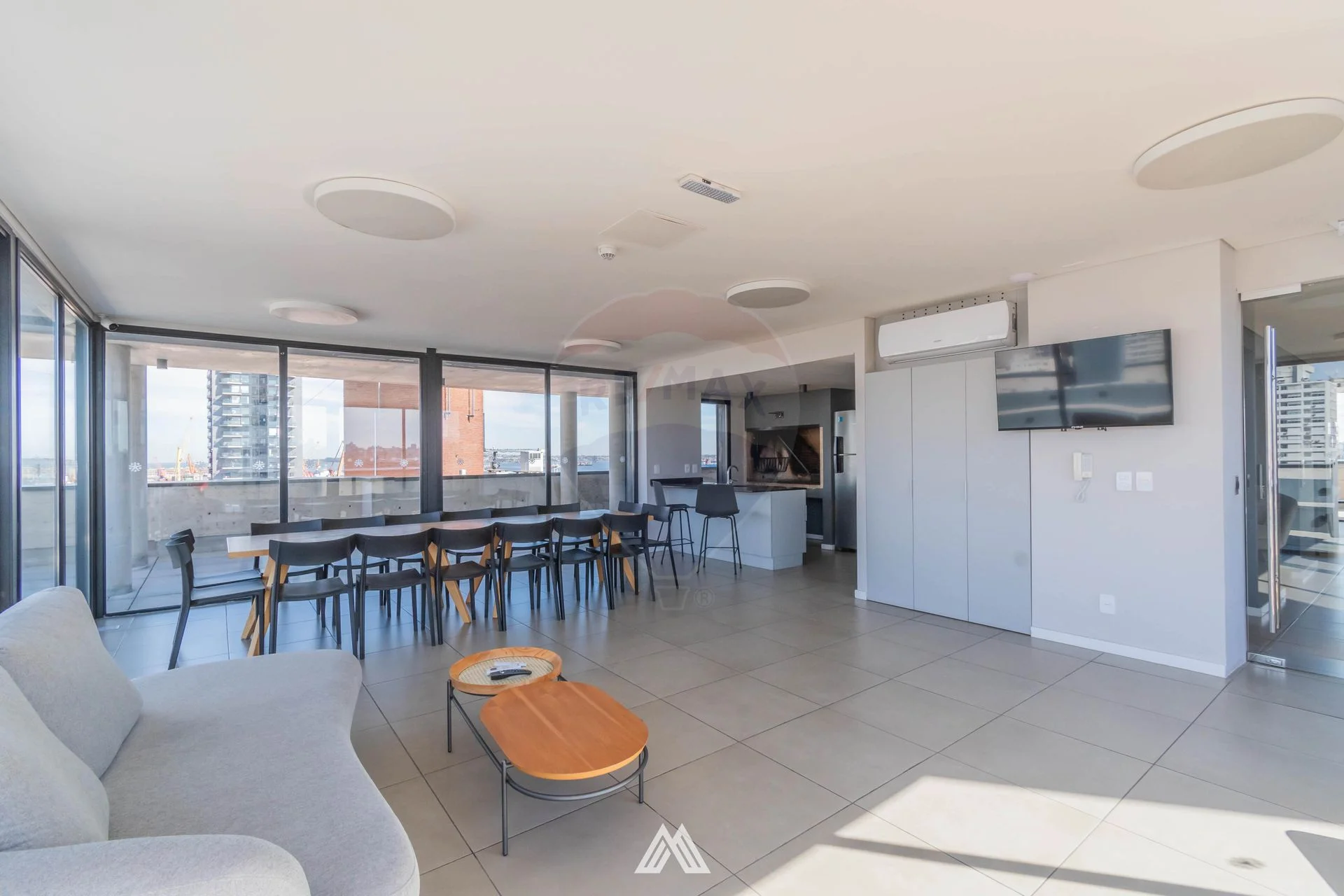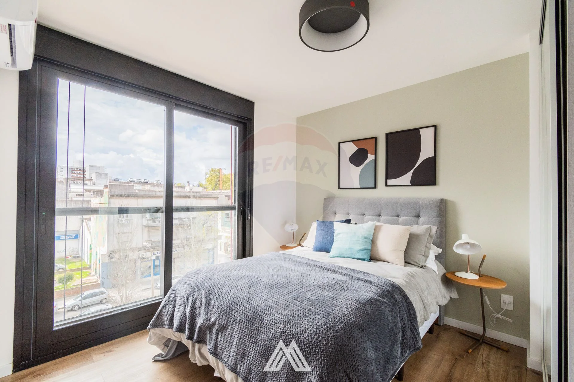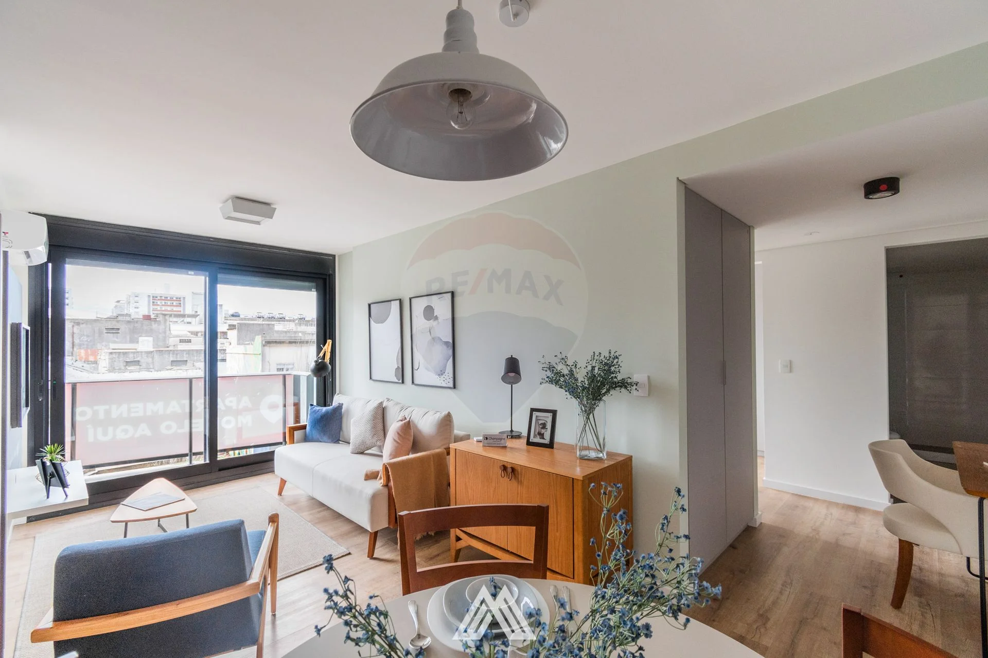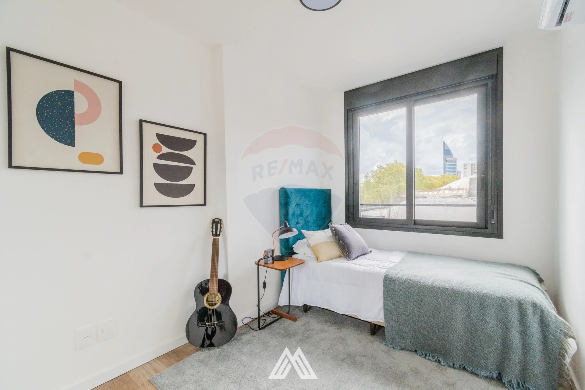 El apartamento cuenta con living comedor con acceso a terraza. Cocina integrada con gran espacio para almacenaje, mueble aéreo y bajo mesada y salida a terraza de servicio. Hall de distribución con nicho con conexiones para calefón y lavarropas. 2 dormitorios. Baño completo con mueble bajo mesada y espejo. Aire acondicionado en living y previsión en dormitorios. Pisos de listones vinílicos de alto tránsito símil madera, y porcelanato en baño y terrazas. Aberturas de aluminio color negro, vidrios DVH y cortinas de enrollar. Cerradura digital con apertura mediante código, tarjeta o huella.