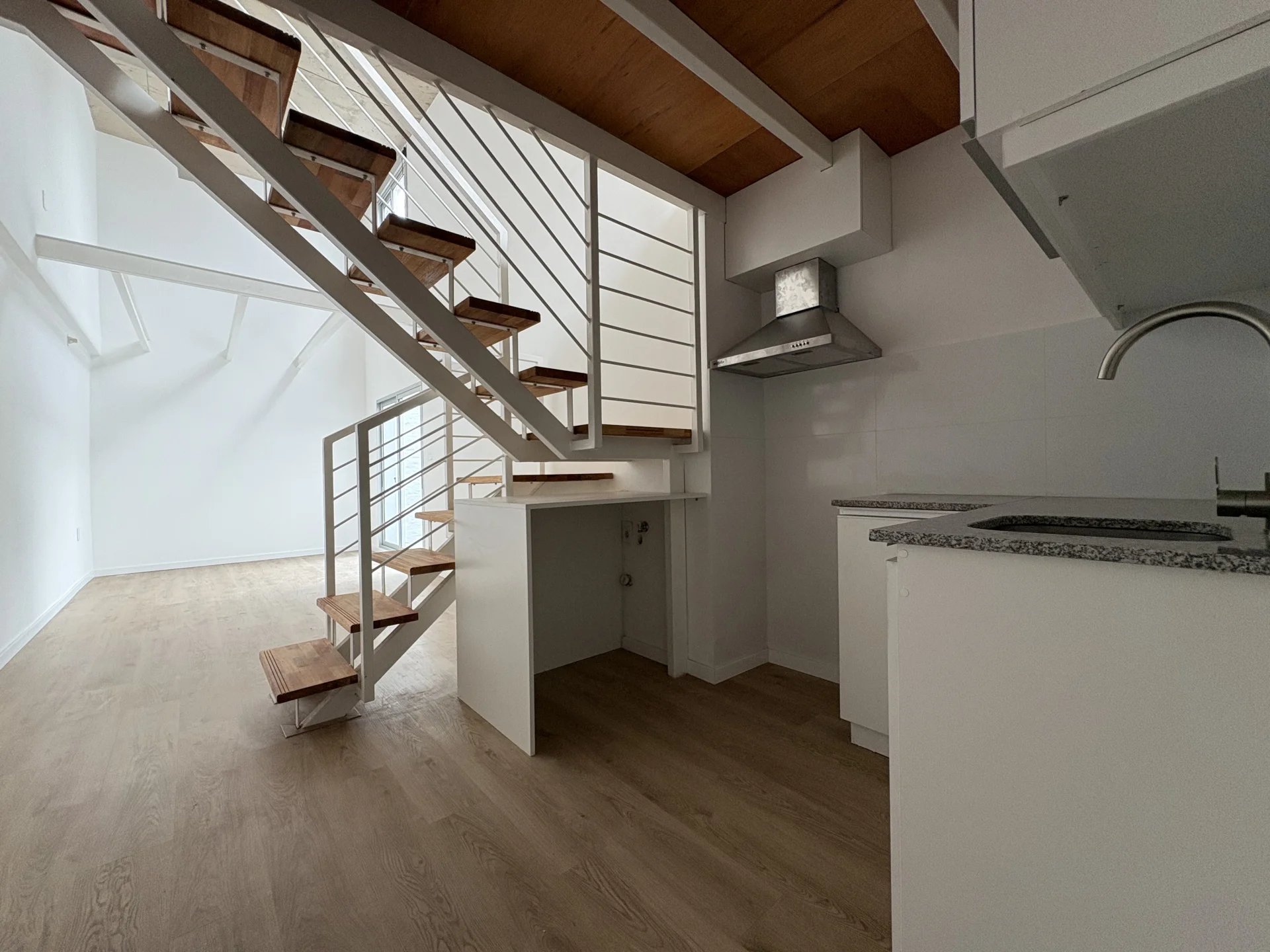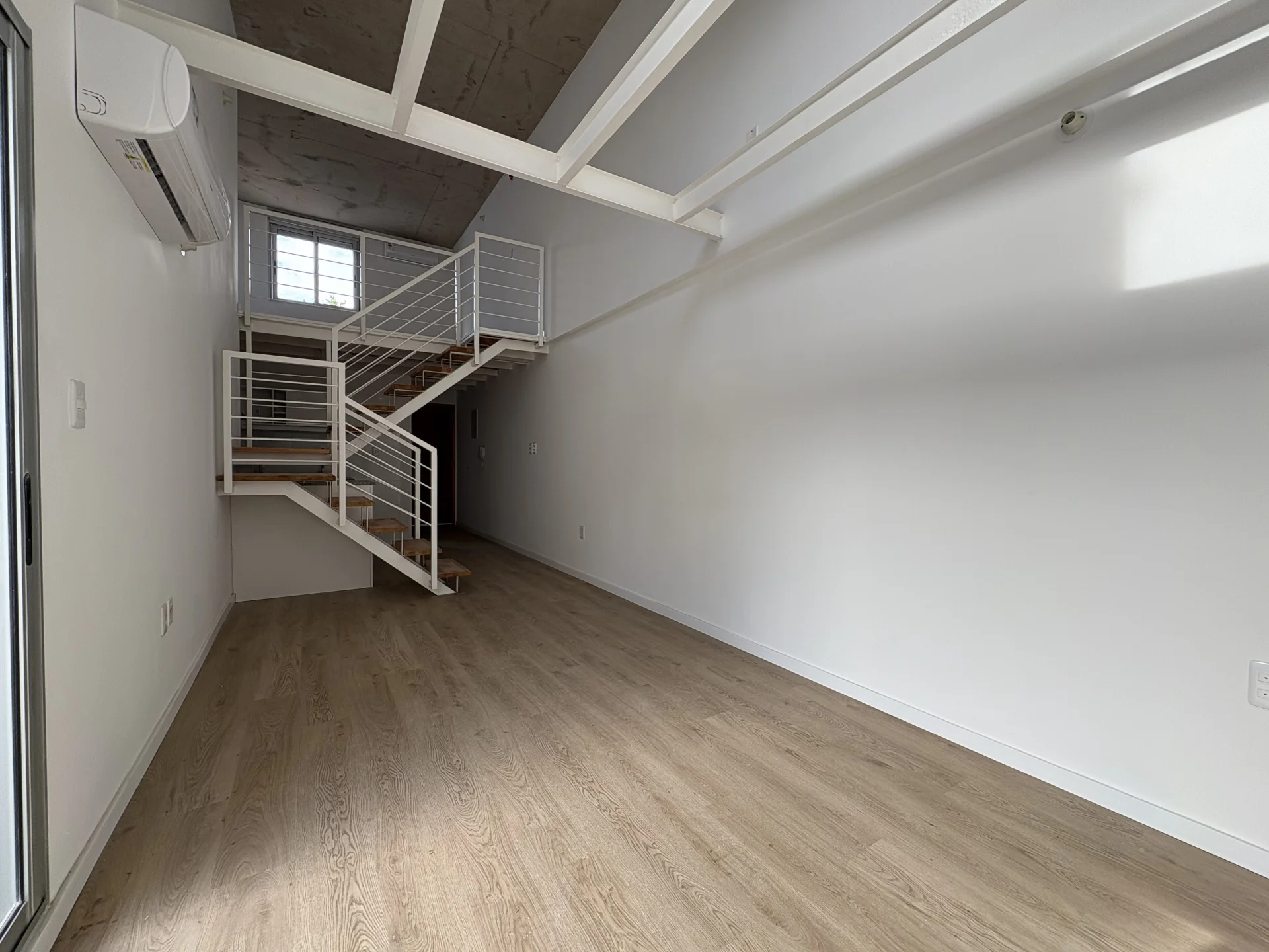 El apartamento se desarrolla en 2 plantas, cuenta en planta baja con living comedor con cocina integrada y cómodo baño. En planta alta cuenta con dormitorio.