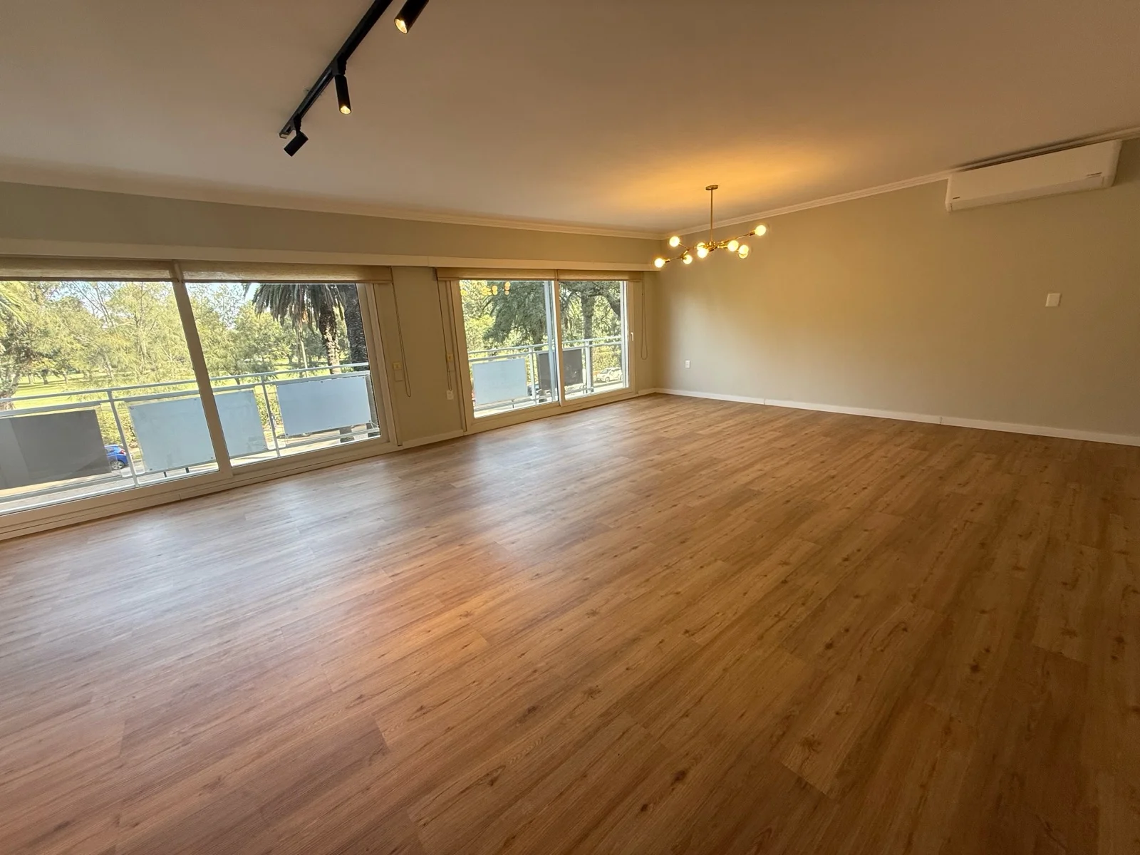 El amplio living comedor tiene vistas despejadas al Golf, con ventanales de doble vidrio. Cuenta con toilette, gran cocina con estar diario y lavadero independiente. Dispone de 3 dormitorios, destacándose la suite principal con vestidor, mientras que los otros dos dormitorios comparten un baño completo.