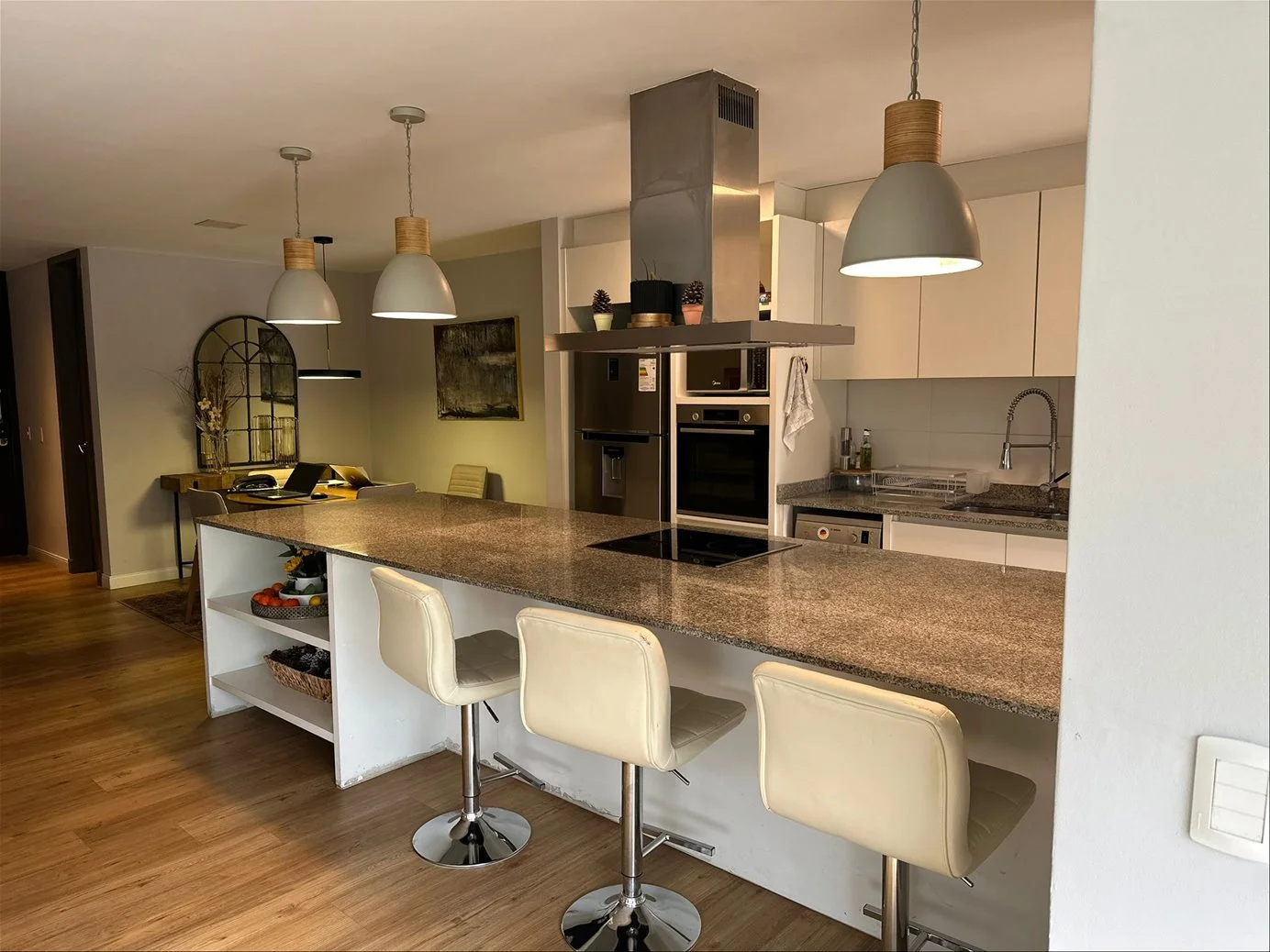 Se trata de una propiedad de 97 metros cuadrados sobre los cuales se desarrolla un muy moderno apartamento con las siguientes comodidades: un cómodo comedor, seguido de una cocina equipada estilo moderno, living al frente con vista y salida a una preciosa y muy espaciosa terraza con parrillero.