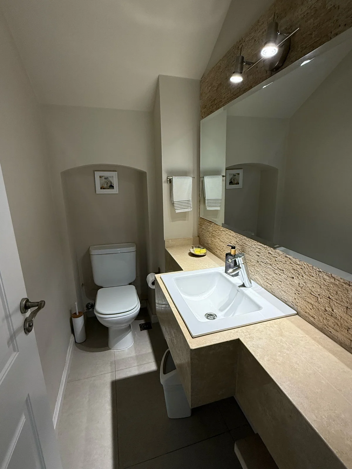 En la Planta Baja, tiene un hall de ingreso que da la bienvenida a un espacio amplio de living y comedor, ideales para recibir visitas. Separado por una puerta corrediza, se encuentra el estar lleno de luz natural, acompañado por una estufa a leña tradicional que agrega calidez. Un toilette complementa esta planta. La cocina y el área de lavandería son cómodos y funcionales. Al lado, se encuentra el dormitorio y baño de servicio.