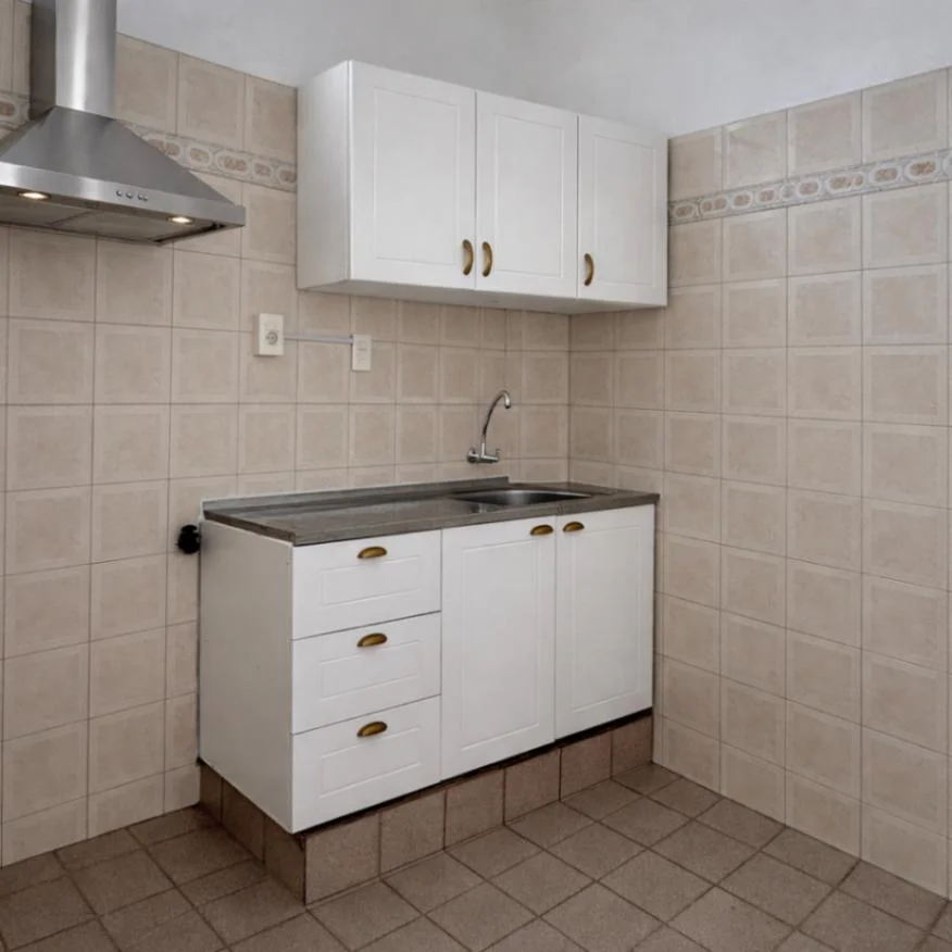 Cocina equipada con placares sobre y bajo mesada . Campana extractora.