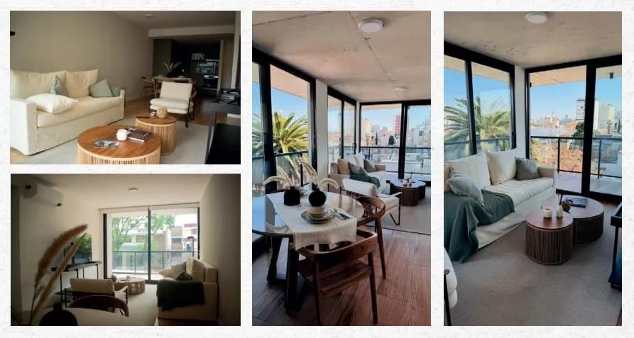 Son dos dormitorios al frente, con doble baño, cocina integrada y laundry.