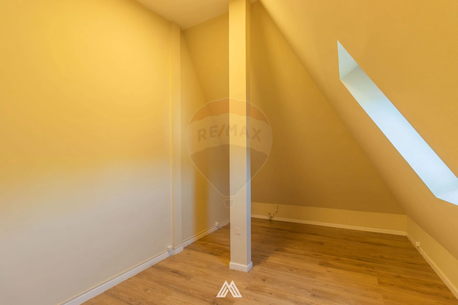 Una segunda escalera conduce al nivel superior, donde se encuentran dos amplios dormitorios, uno de ellos con placard empotrado y un baño completo con mampara de vidrio