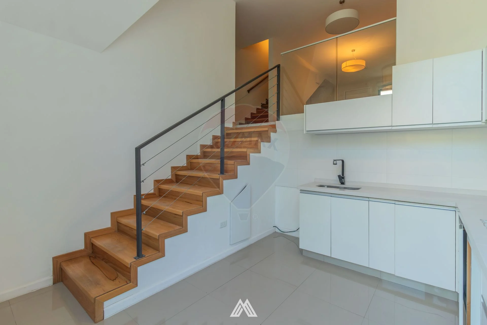 Desde allí se accede por una elegante escalera al nivel inferior, donde se ubica la cocina definida, amplia y funcional, con salida a una gran terraza propia , ideal para disfrutar del aire libre