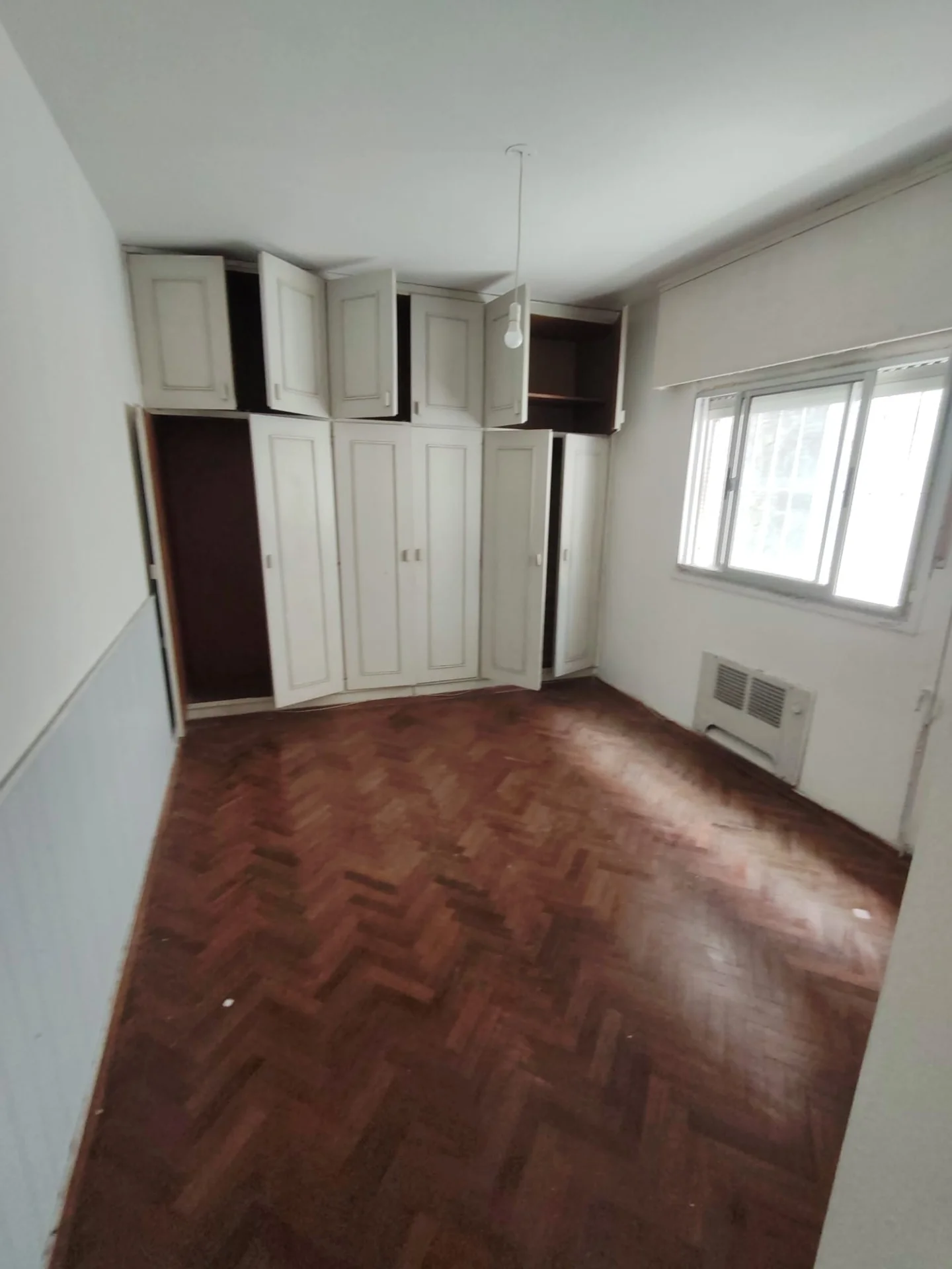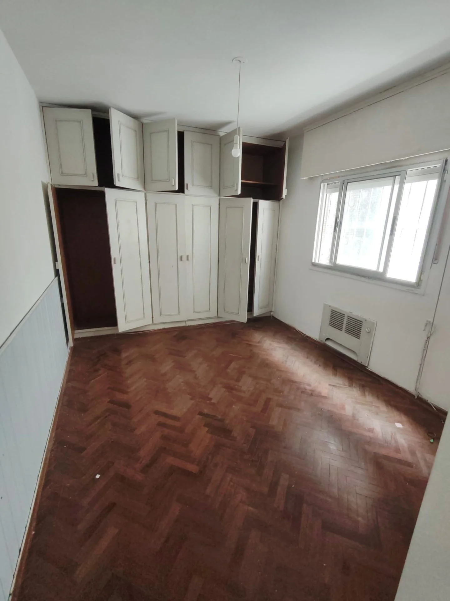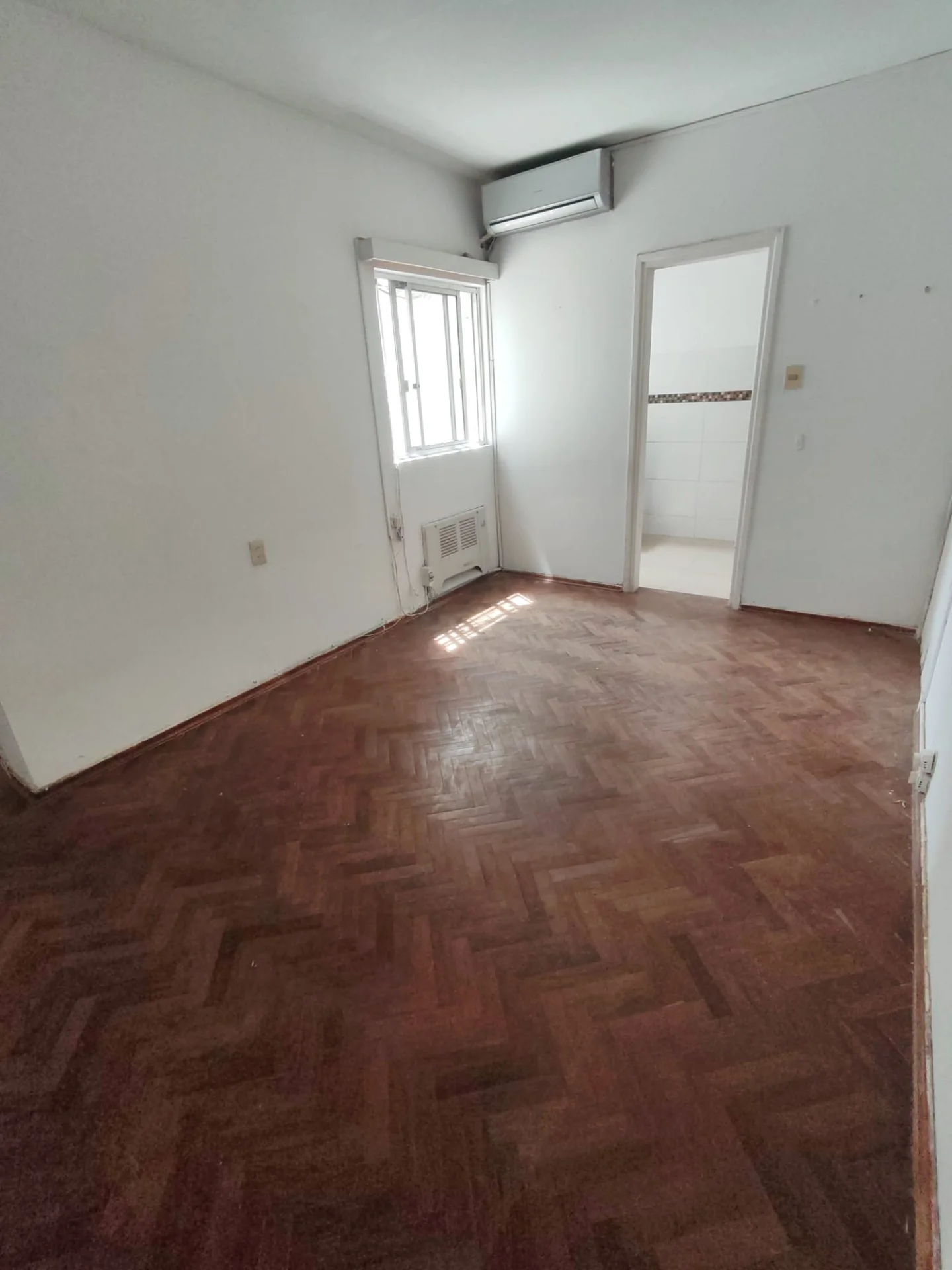 El amplio dormitorio es un verdadero santuario, equipado con elegantes placares empotrados y pisos de parquet que añaden calidez y sofisticación. Disfrute de la tranquilidad y la privacidad de un contrafrente con vistas despejadas al exterior.